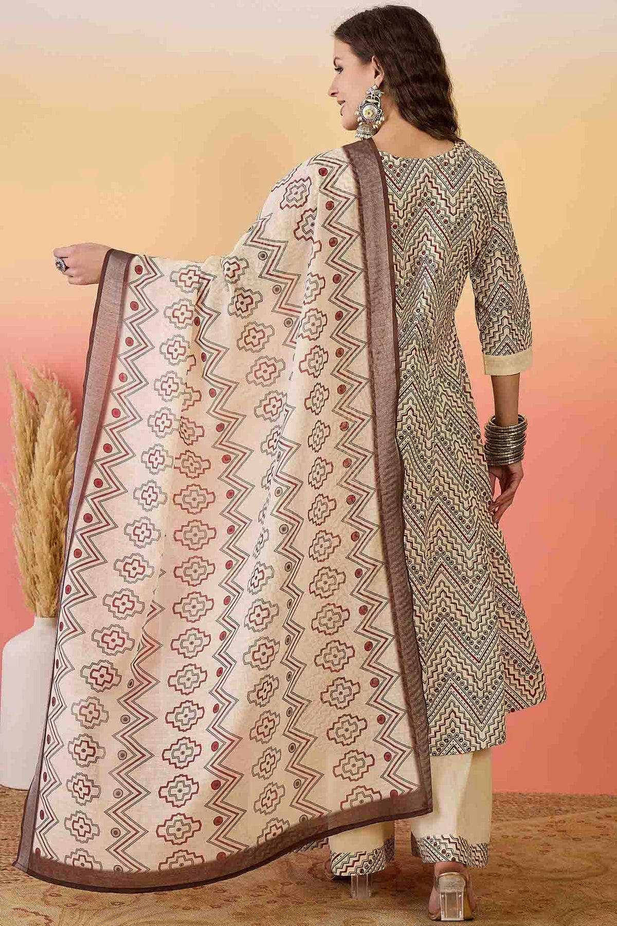 Beige Colour Khadi Silk Stitched Palazzo Pant Suit VSSS1113937