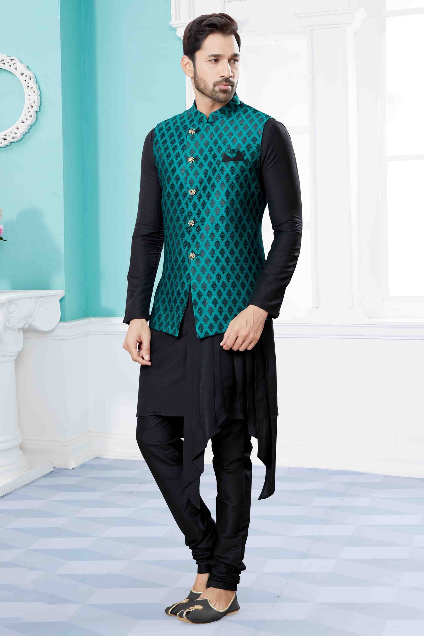 Black and Green Colour Indo Western In Silk Dupion Fabric VSSH1040470