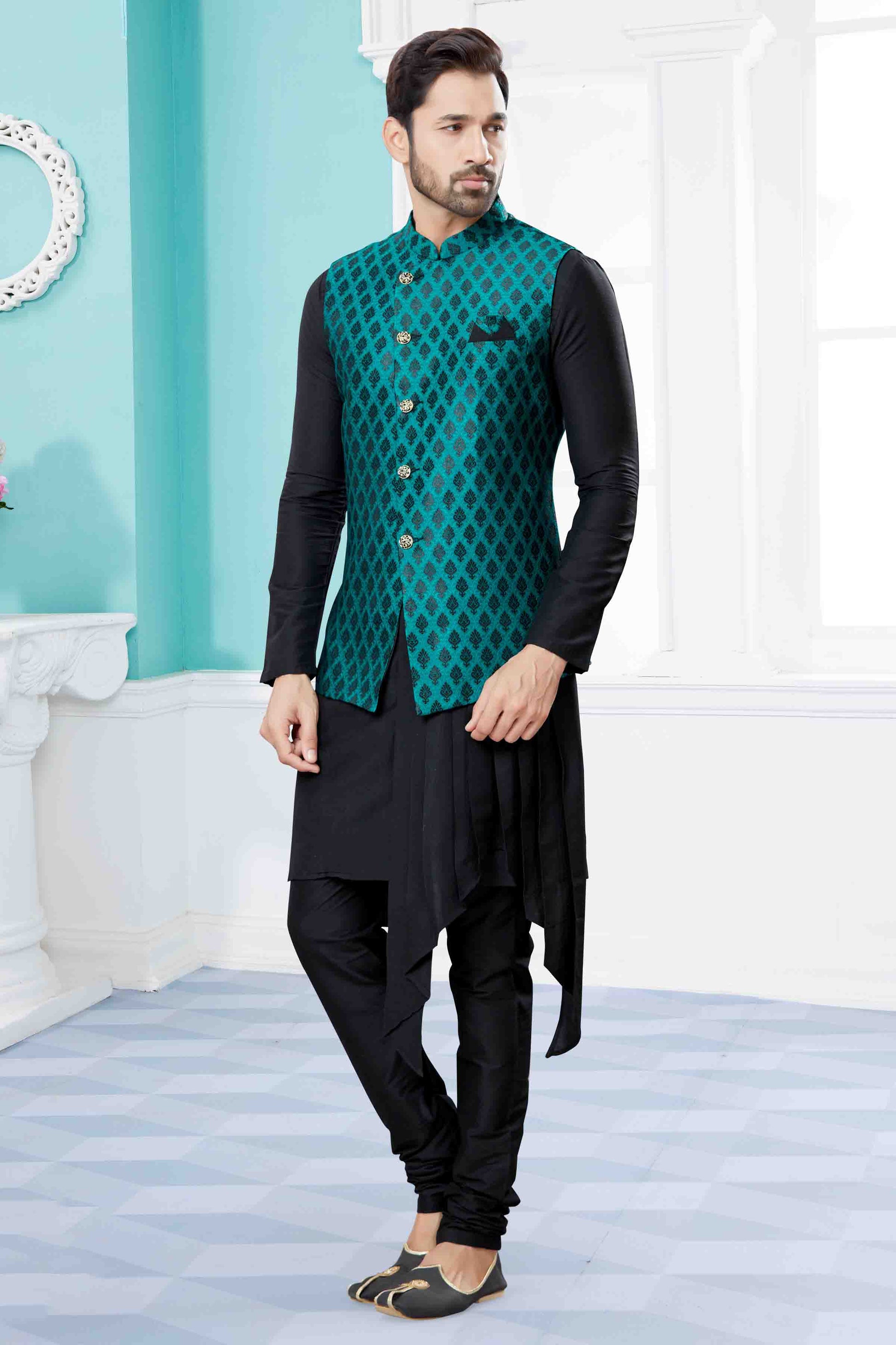 This Indo Western Is Perfect One Crafted With Work. The Black And Green Colour Kurta Is Fabricated In Silk Dhupion. It Has Comes In Various Sizes 34,36,38,40,42,44,46,48,50,52 . So You Can Wear This And Make Your Celebration Unique With This Indo Western.