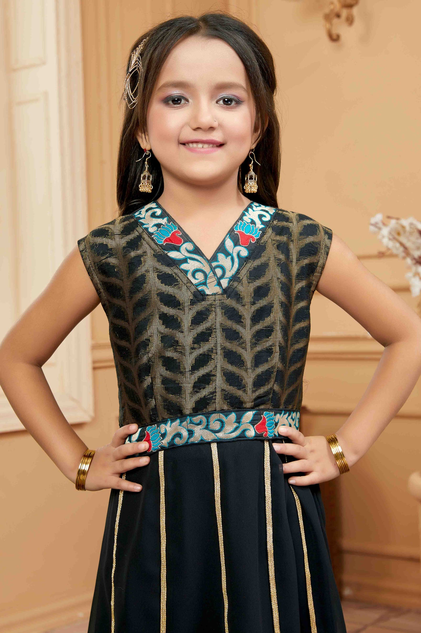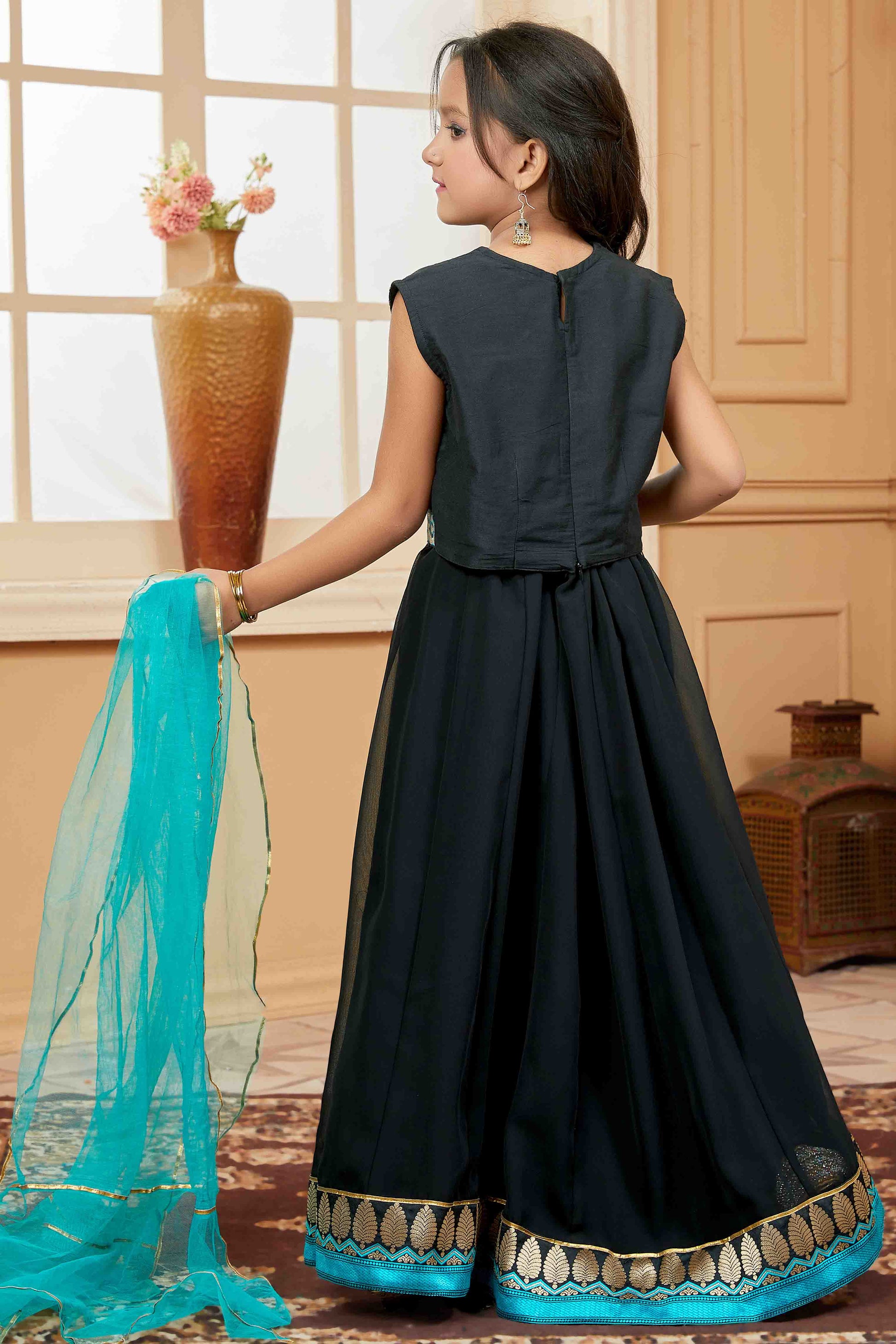 Dress Up Your Little Dude In A Comfortable Faux Georgette Made Lehenga Choli, Which Looks Adorable And Charming. The Black Colour Of Lehenga Choli Looks Vibrant And Hence Is Suitable For Any Special Occasion.