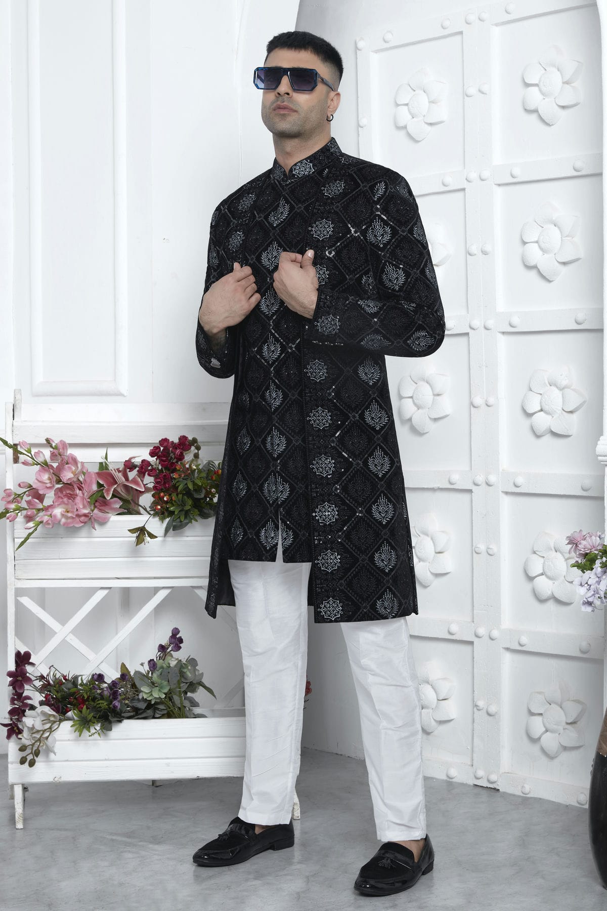 This Velvet Silk Indo Western Sherwani In Black Colour is a great way to show off your style and comfort. You can feel relaxed by wearing it at any function.