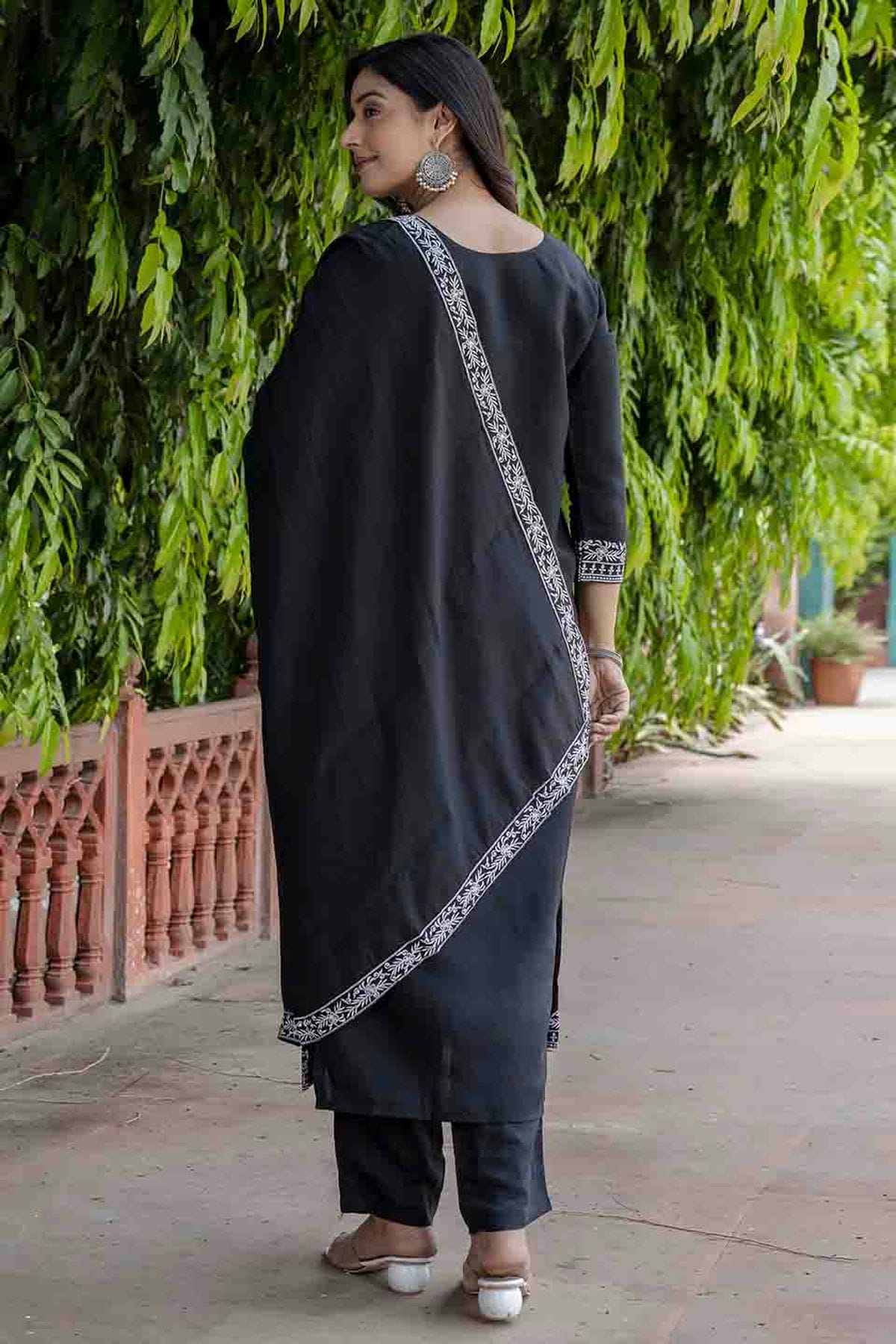 Black Colour Viscose Roman Silk Stitched Pant Style Suit VSSS1113896
