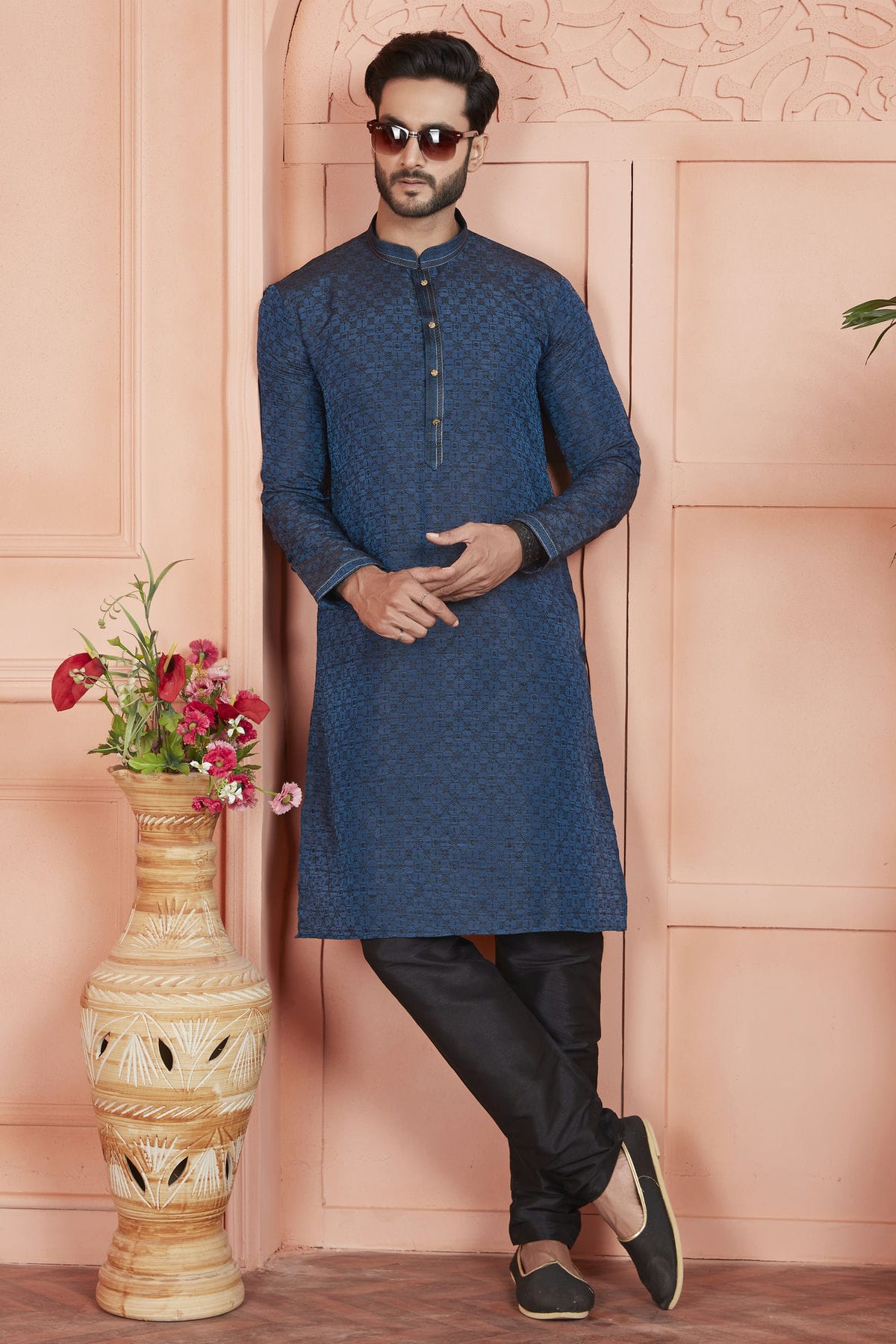 This Jacquard Silk Brocade Kurta Pajama In Blue Colour is a great way to show off your style and comfort. You can feel relaxed by wearing it at any function.