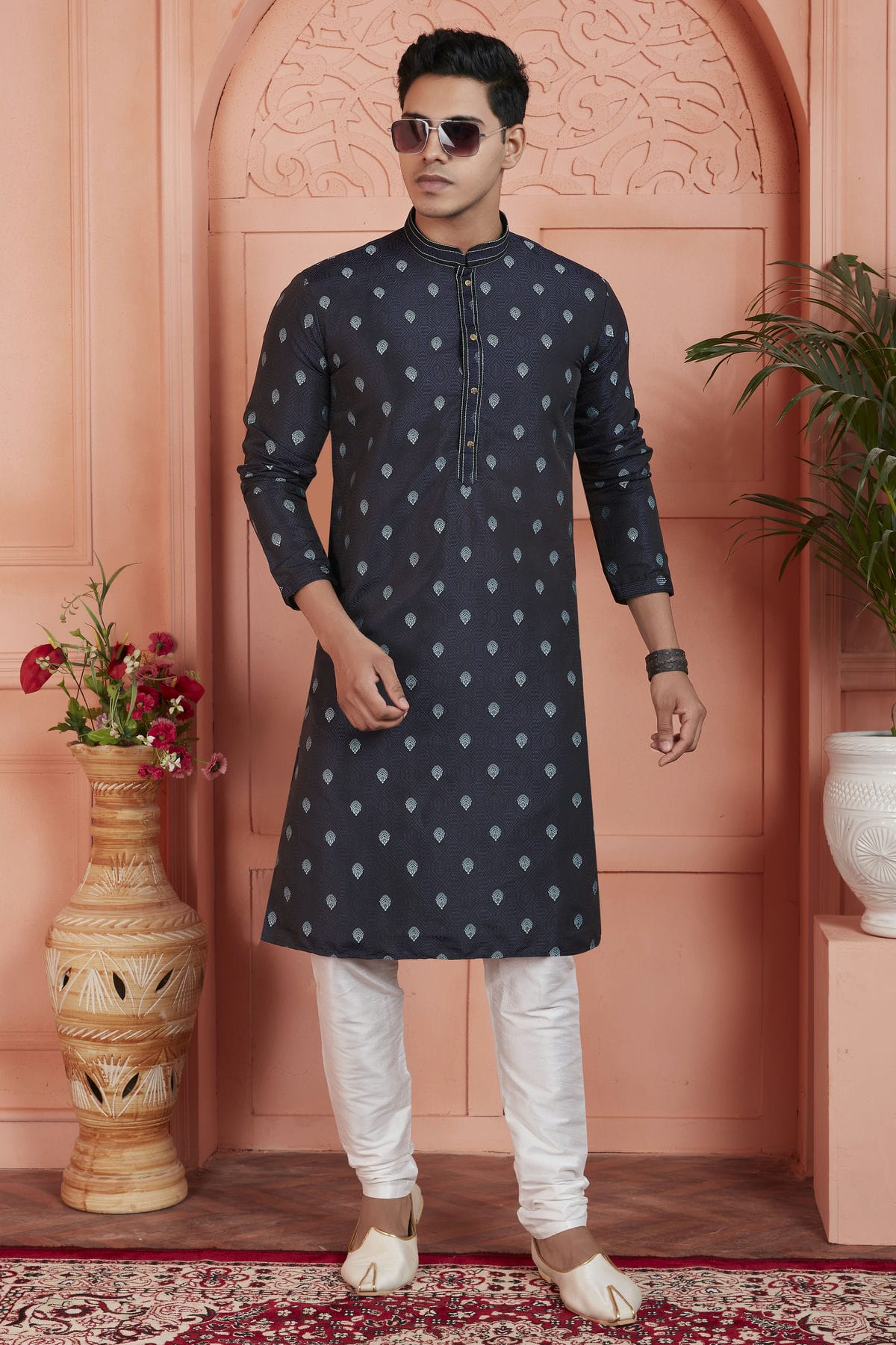This Jacquard Silk Brocade Kurta Pajama In Blue Colour is a great way to show off your style and comfort. You can feel relaxed by wearing it at any function.