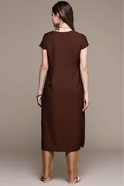 This Crepe Brown Colour Kurti Is The Fun Attire Of The Moment. Get It On And Style It With Handbag And Earrings For The Perfect Day Look. Its Party Wear And Cute - The Essentials For Your Wardrobe.