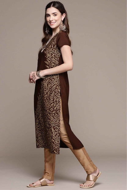 Brown Colour Crepe Foil Print Kurti VSKR1060233