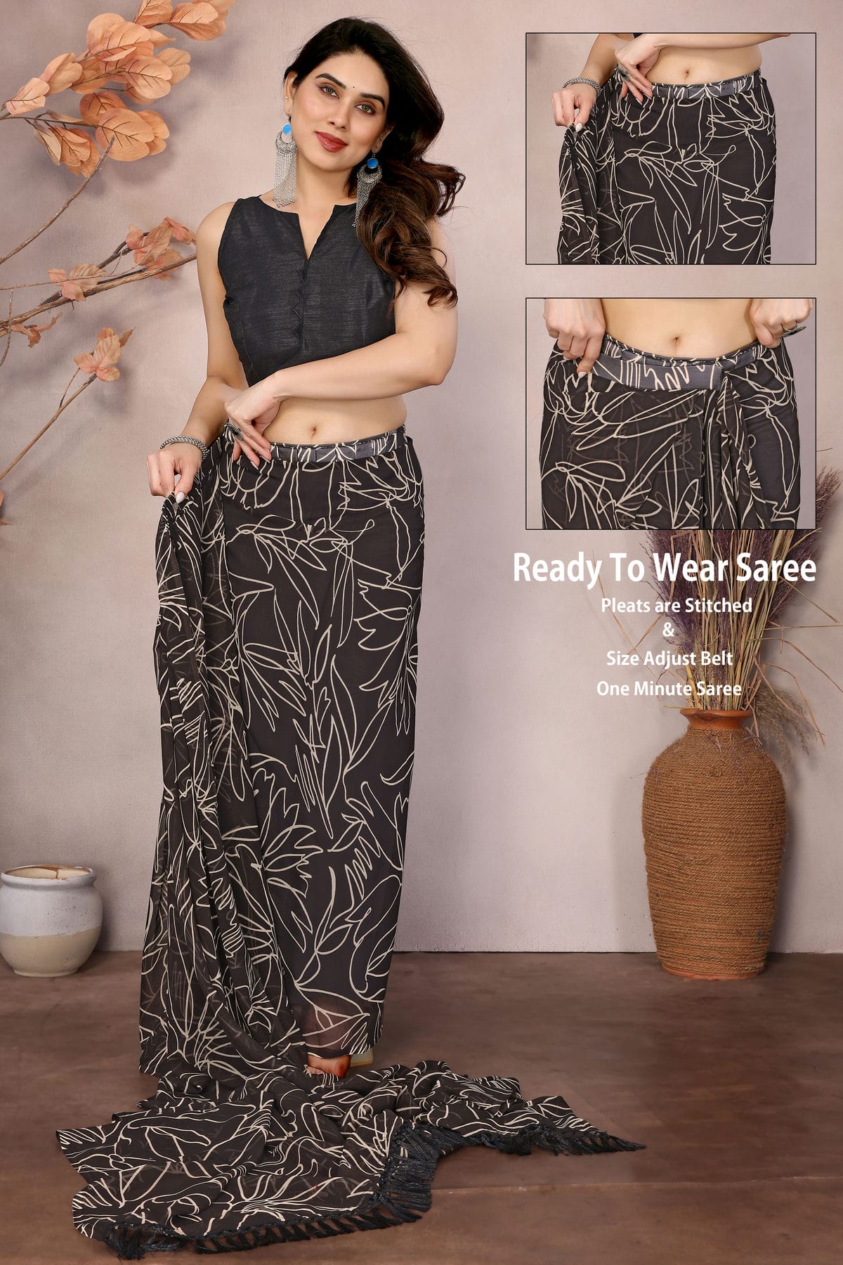 This Georgette Ready To Wear Saree In Brown Colour is a great way to show off your style and comfort. You can feel relaxed by wearing it at any function.