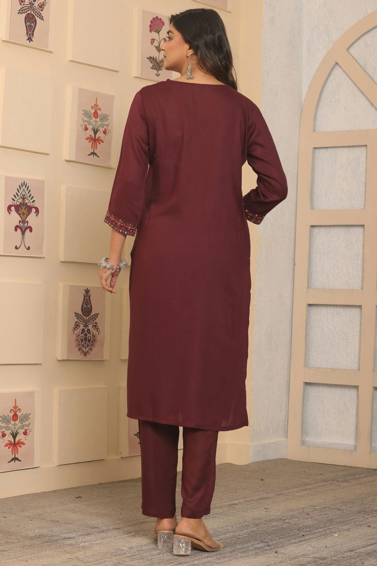 This deep maroon looks so regal! Perfect for weddings and sangeets.