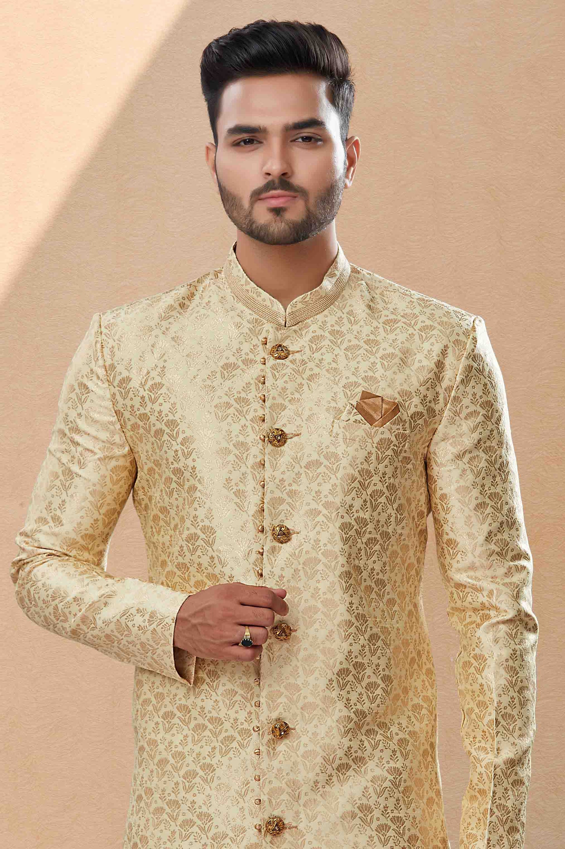 Cream and Gold Colour Dhoti Sherwani In Banarasi Jacquard Fabric VSSH1040406