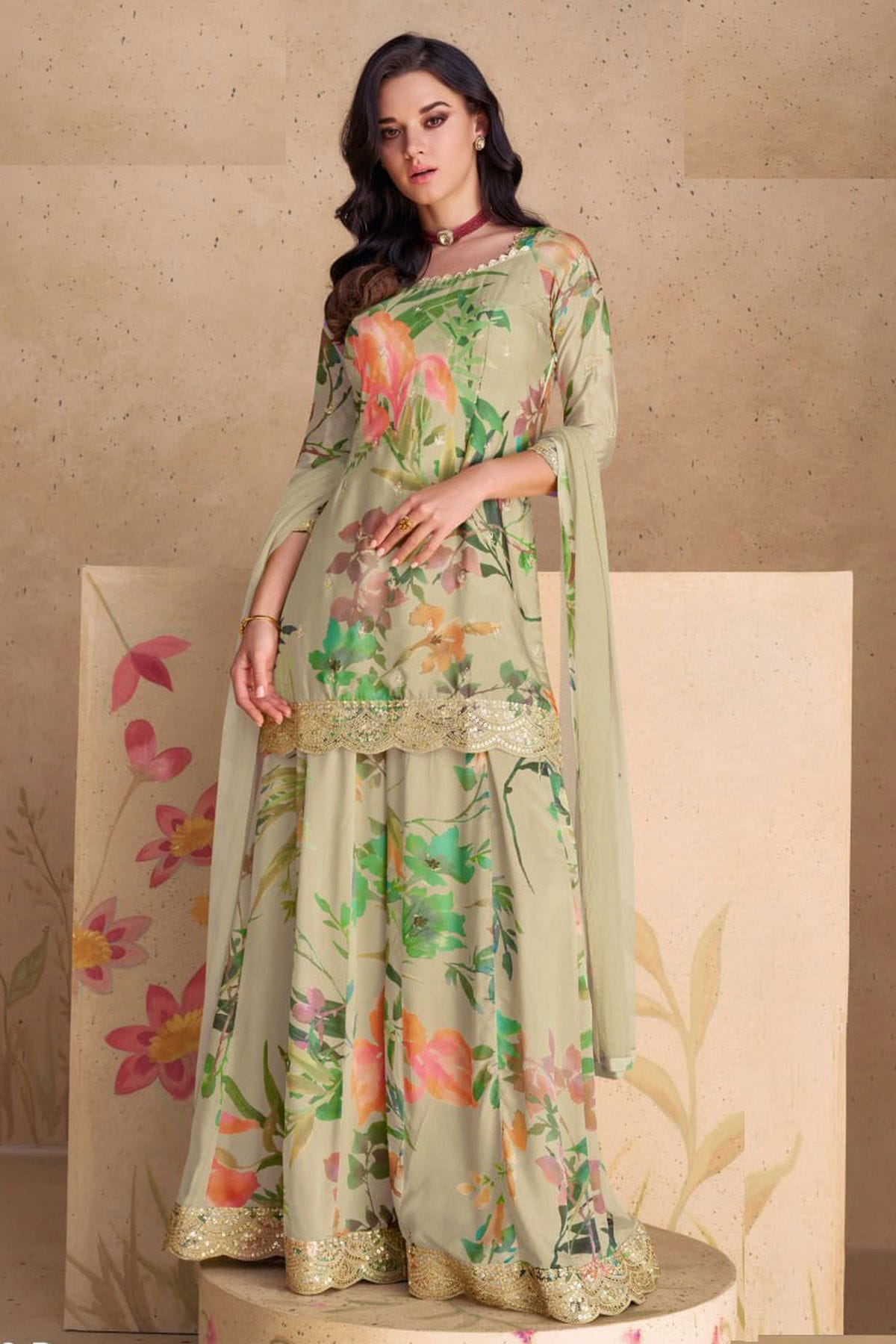 This Chinon Palazzo Pant Suit In Cream Colour is a great way to show off your style and comfort. You can feel relaxed by wearing it at any function.