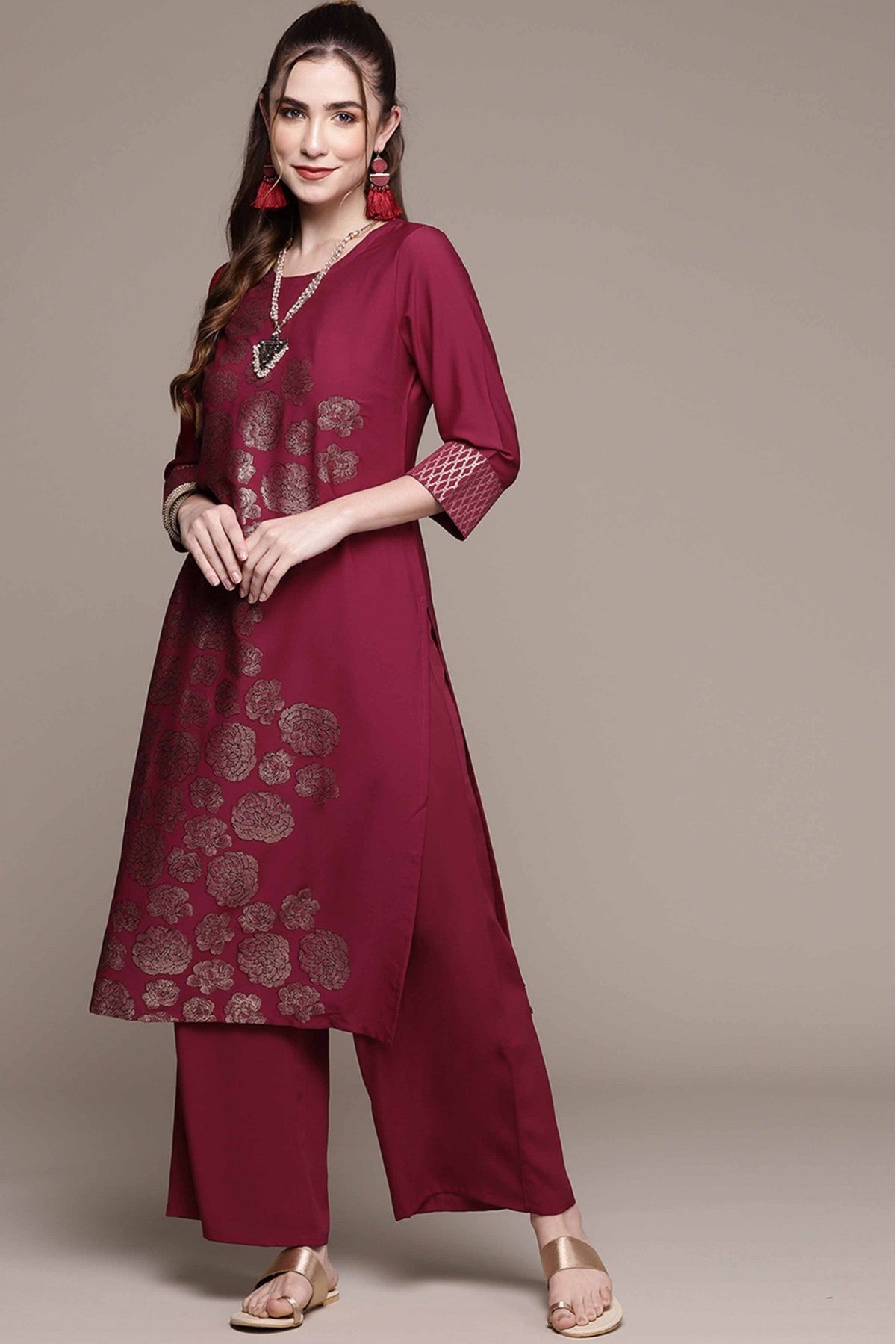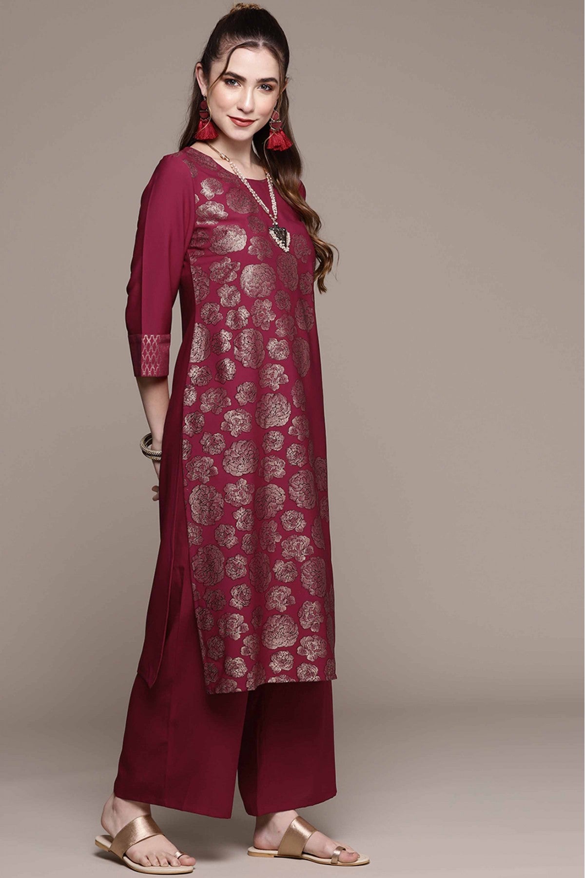 Dark Pink Colour Crepe Foil Print Kurta With Palazzo VSKR1060022