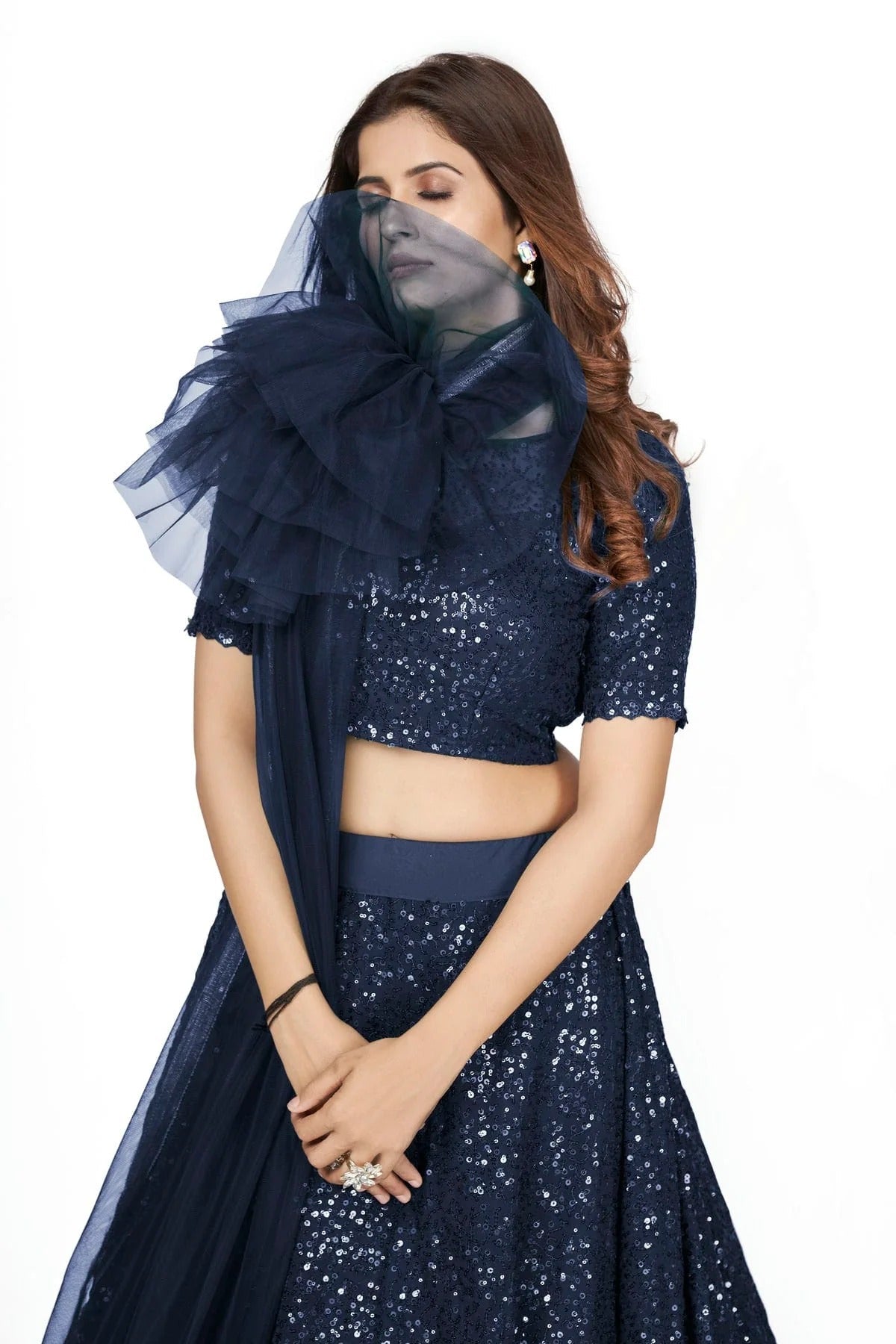 Turn heads in this stunning lehenga choli made with Georgette. Available in elegant Dark Blue, the set includes a lehenga, blouse, and dupatta. Perfect for weddings, receptions, and grand occasions.
