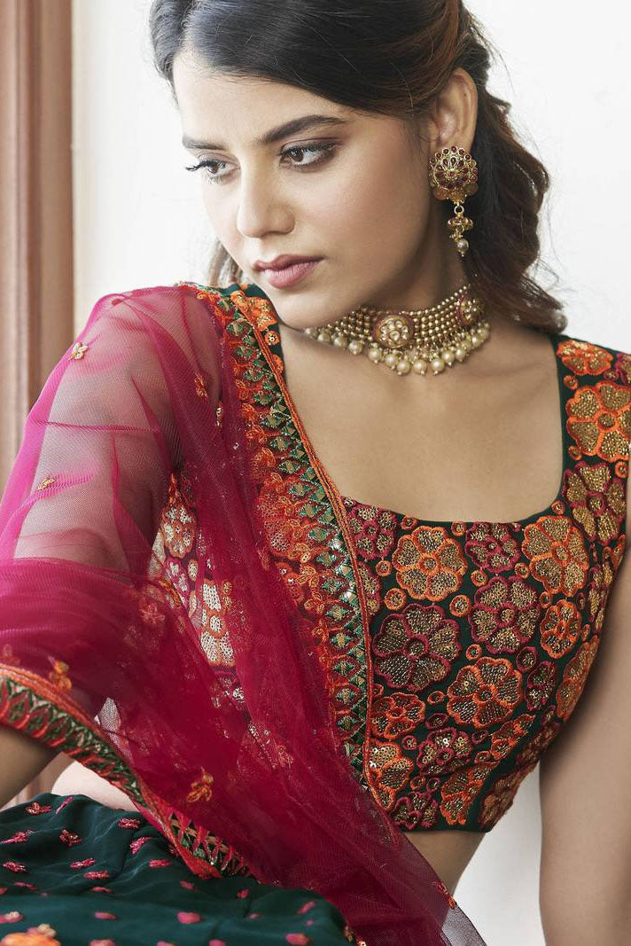 This Georgette Lehenga Choli In Green Colour is a great way to show off your style and comfort. You can feel relaxed by wearing it at any function.
