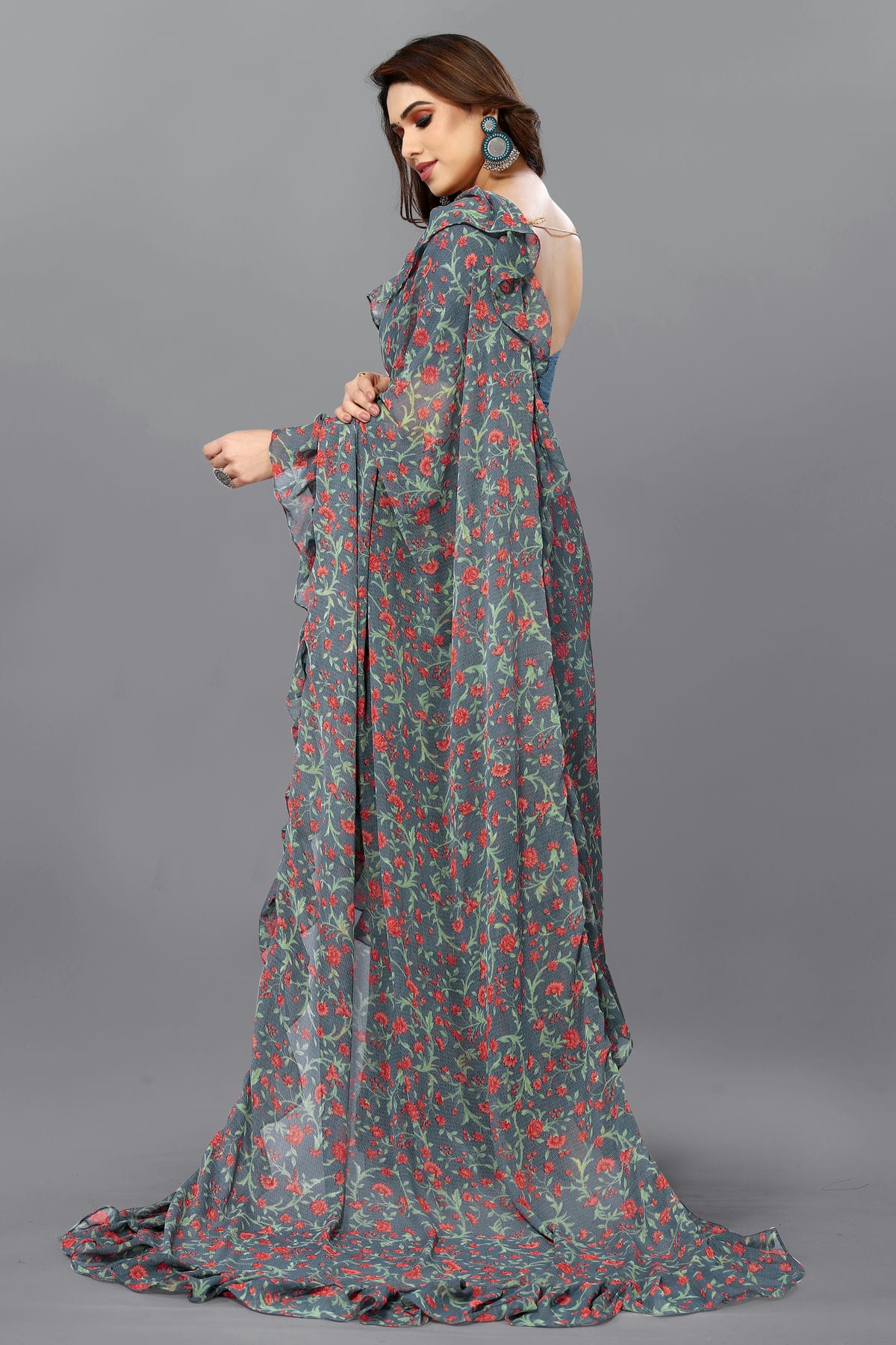 Style :- Ruffle Saree