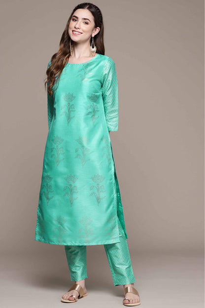 Green Colour Poly Silk Foil Print Kurta With Pant VSKR1060151
