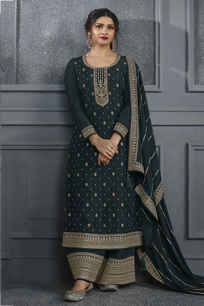 This Dola Jacquard Silk Palazzo Pant Suit In Green Colour is a great way to show off your style and comfort. You can feel relaxed by wearing it at any function.