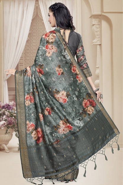 Grey Colour Art Silk Printed Saree VSSD1120640