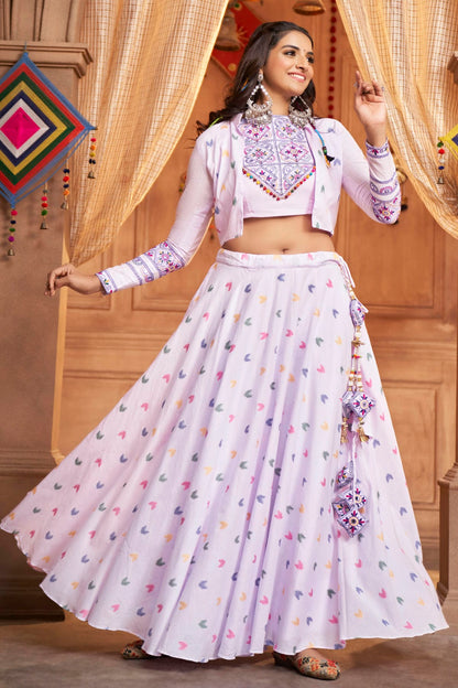 Lavender Colour Cotton Navratri Lehenga VSLC1150226