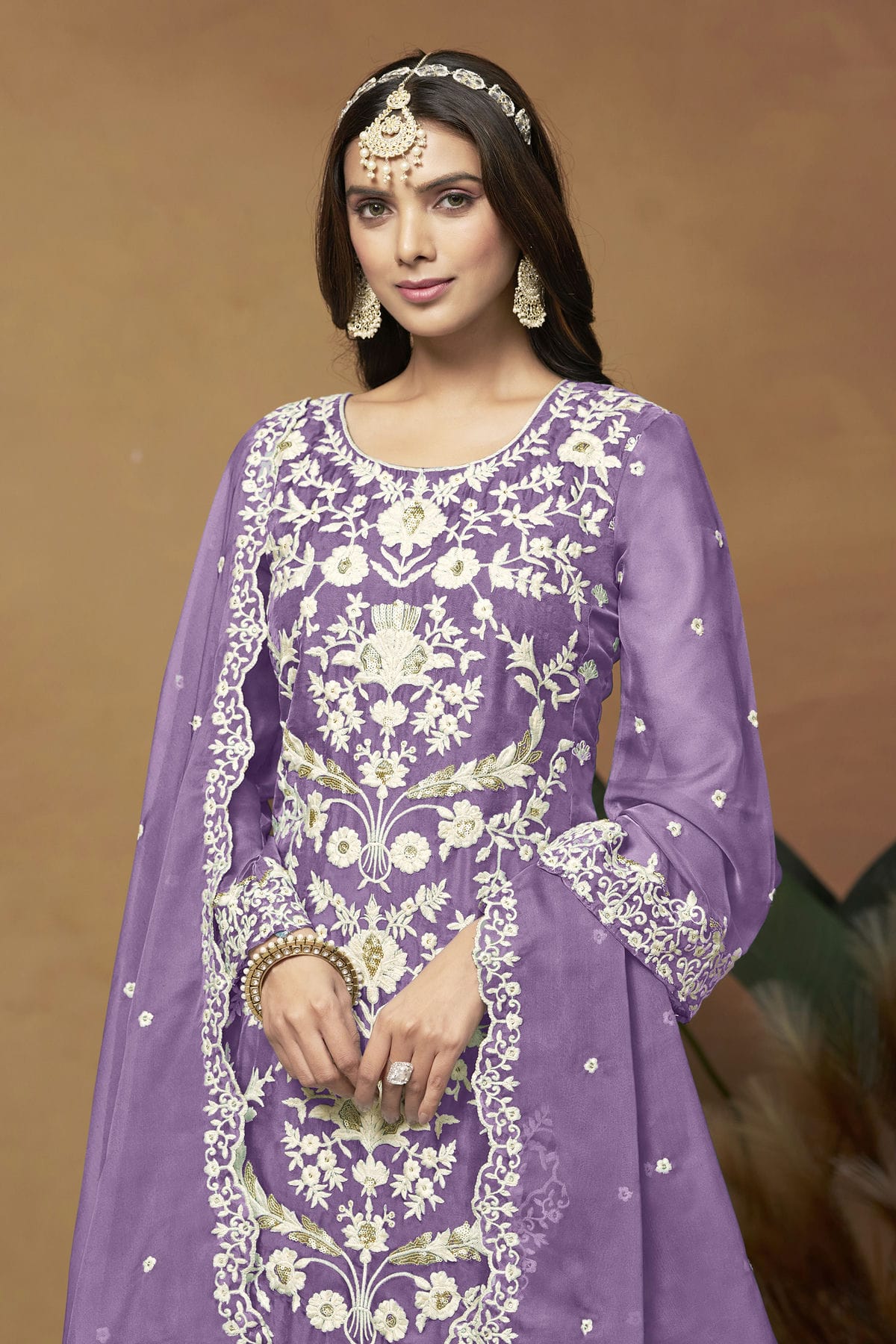This Soft Organza Straight Suit In Lavender Colour is a great way to show off your style and comfort. You can feel relaxed by wearing it at any function.