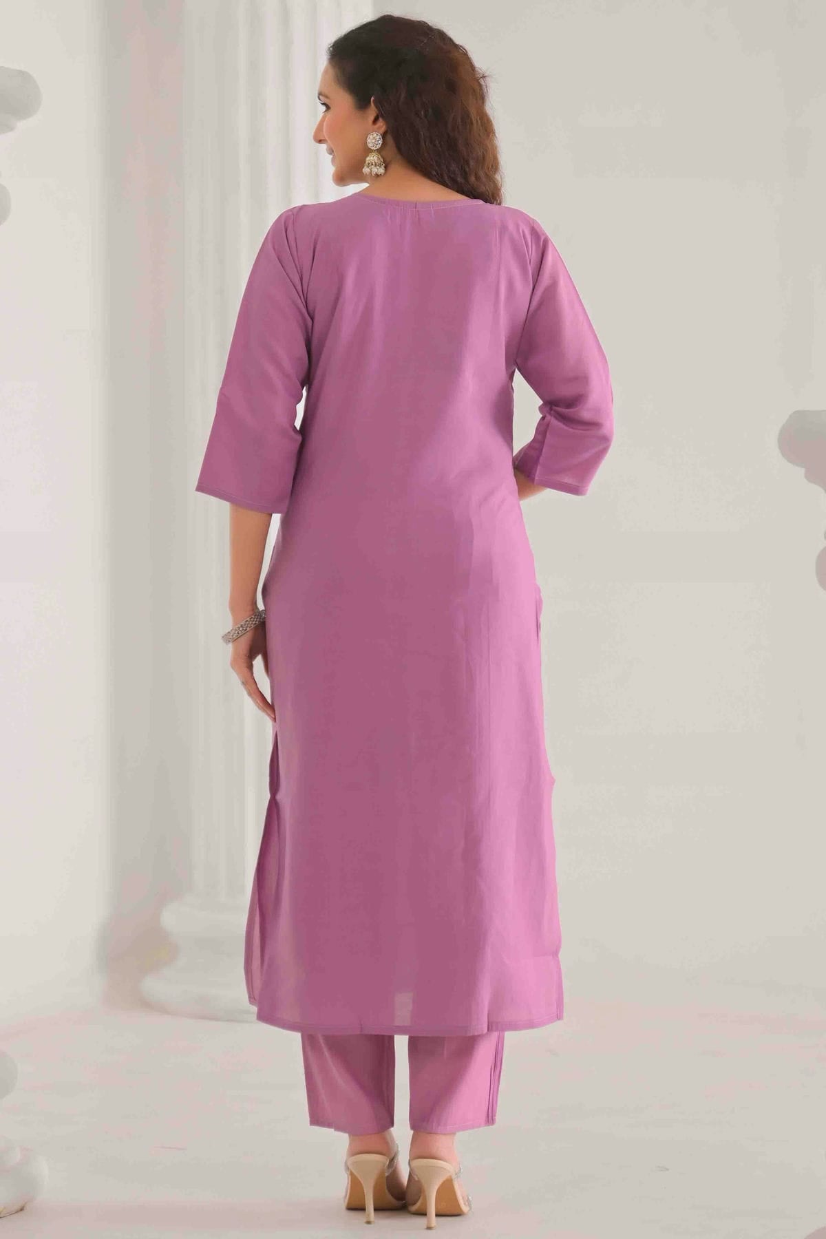 This Viscose Chanderi Pant Style Suit In Lavender Colour is a great way to show off your style and comfort. You can feel relaxed by wearing it at any function.