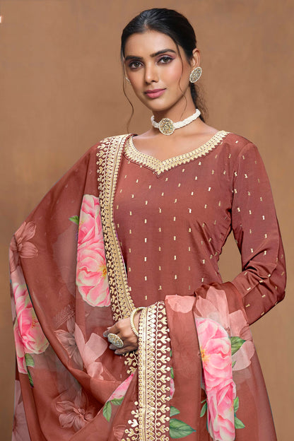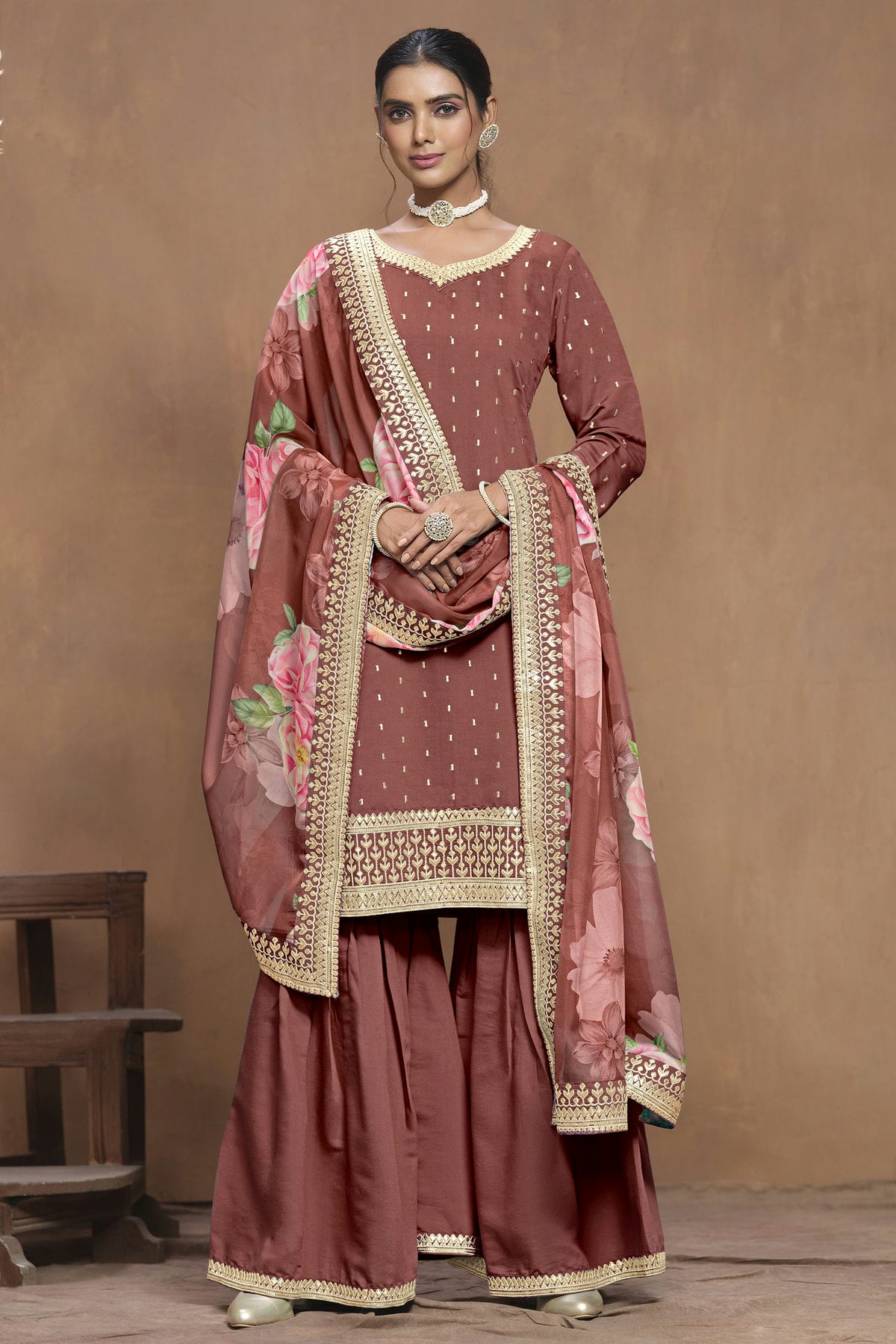 Light Brown Colour Roman Silk Sharara Suit VSSM1050567