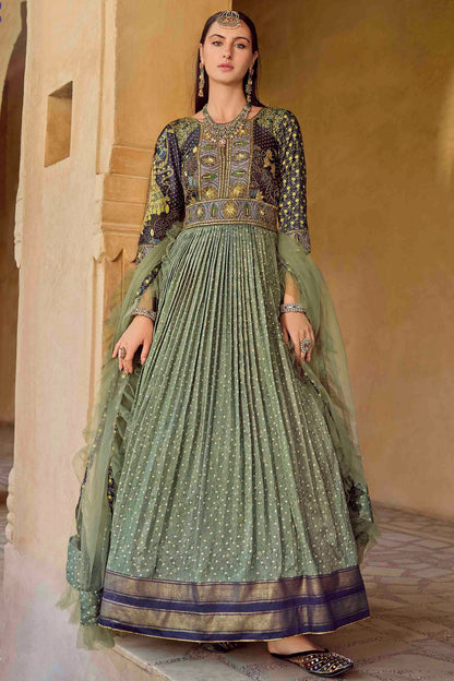 Light Green Colour Smooth Silk Gown VSGW1140791