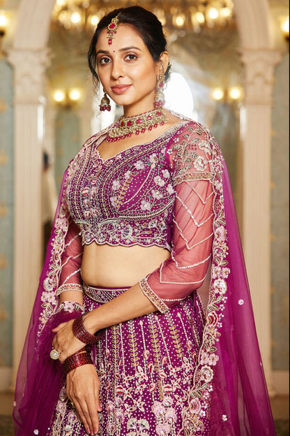 This Net Lehenga Choli In Magenta Colour is a great way to show off your style and comfort. You can feel relaxed by wearing it at any function.