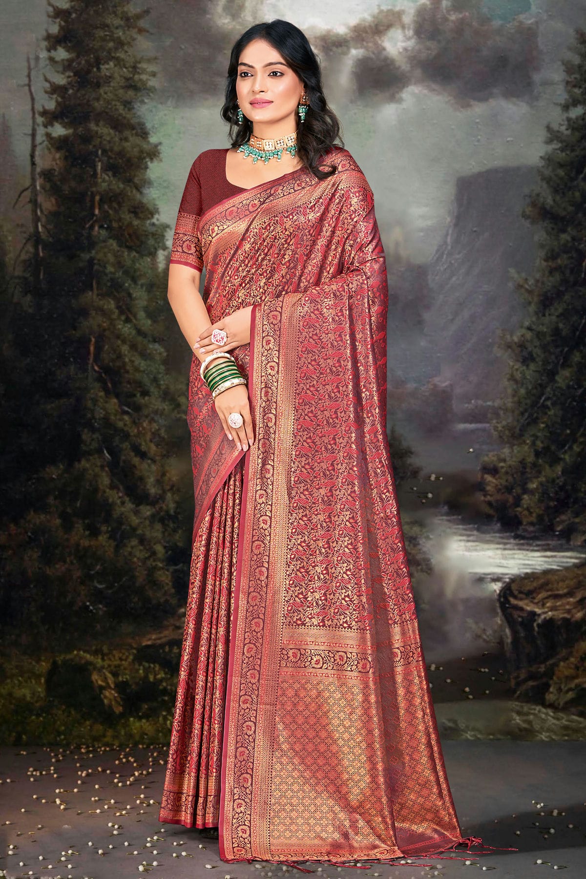 This Banarasi Silk Saree In Maroon Colour is a great way to show off your style and comfort. You can feel relaxed by wearing it at any function.