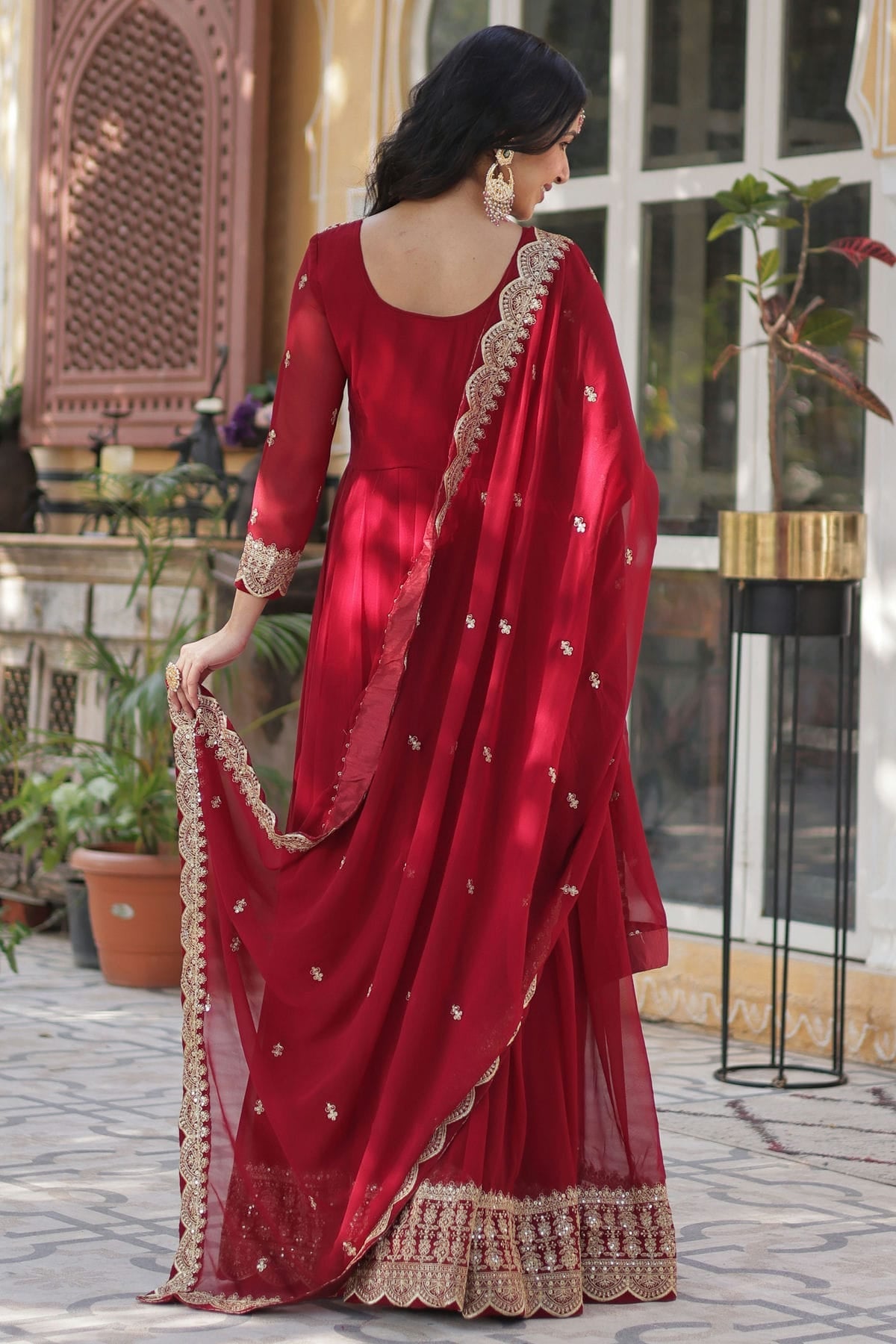 This deep maroon looks so regal! Perfect for weddings and sangeets.