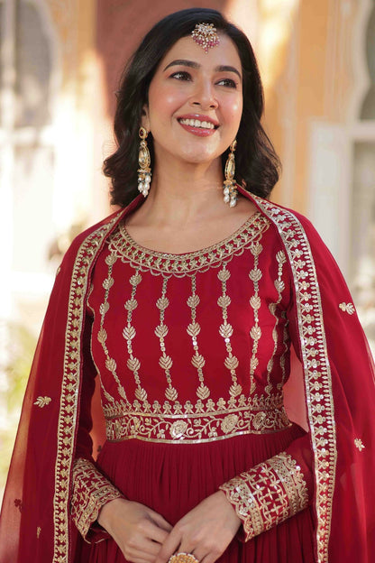 Maroon Colour Faux Georgette Stitched Gown VSGW1113010