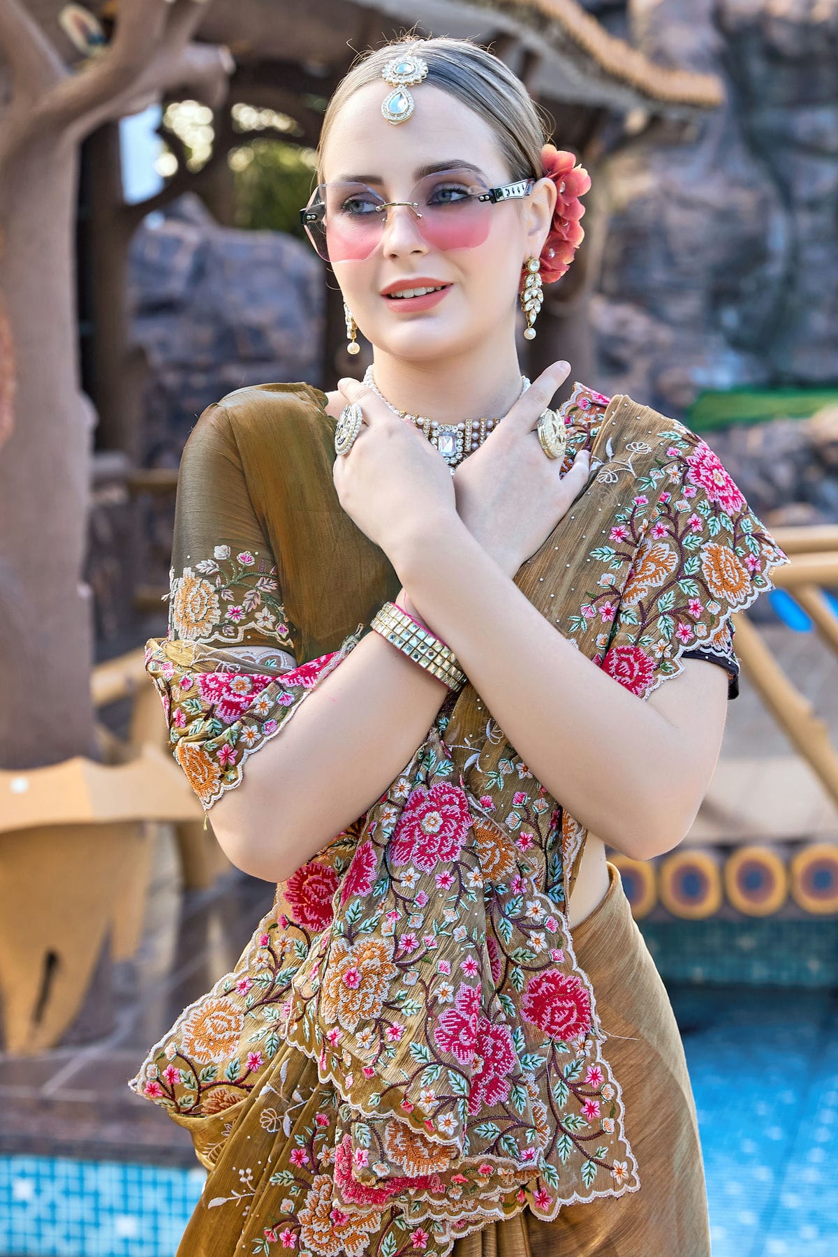 This Enchanting Saree Seamlessly Combines Timeless Tradition With Contemporary Style. Made From Premium Fabric, It Showcases Intricate Details And A Flattering, Elegant Drape. Ideal For Weddings, Festivals, Or Special Events, It Exudes Refinement And Charm. Offered In An Array Of Stunning Colors, This Saree Is A Must-Have For Any Stylish Wardrobe.
