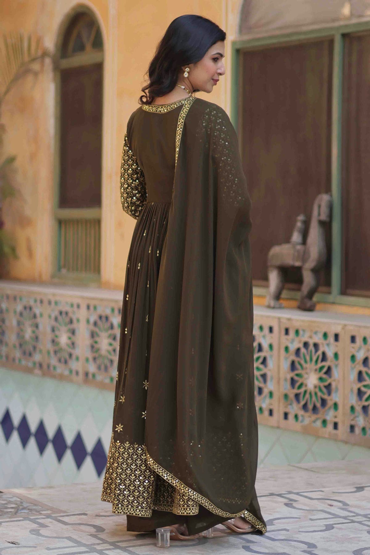 Mehendi Green Colour Stitched Faux Georgette Gown