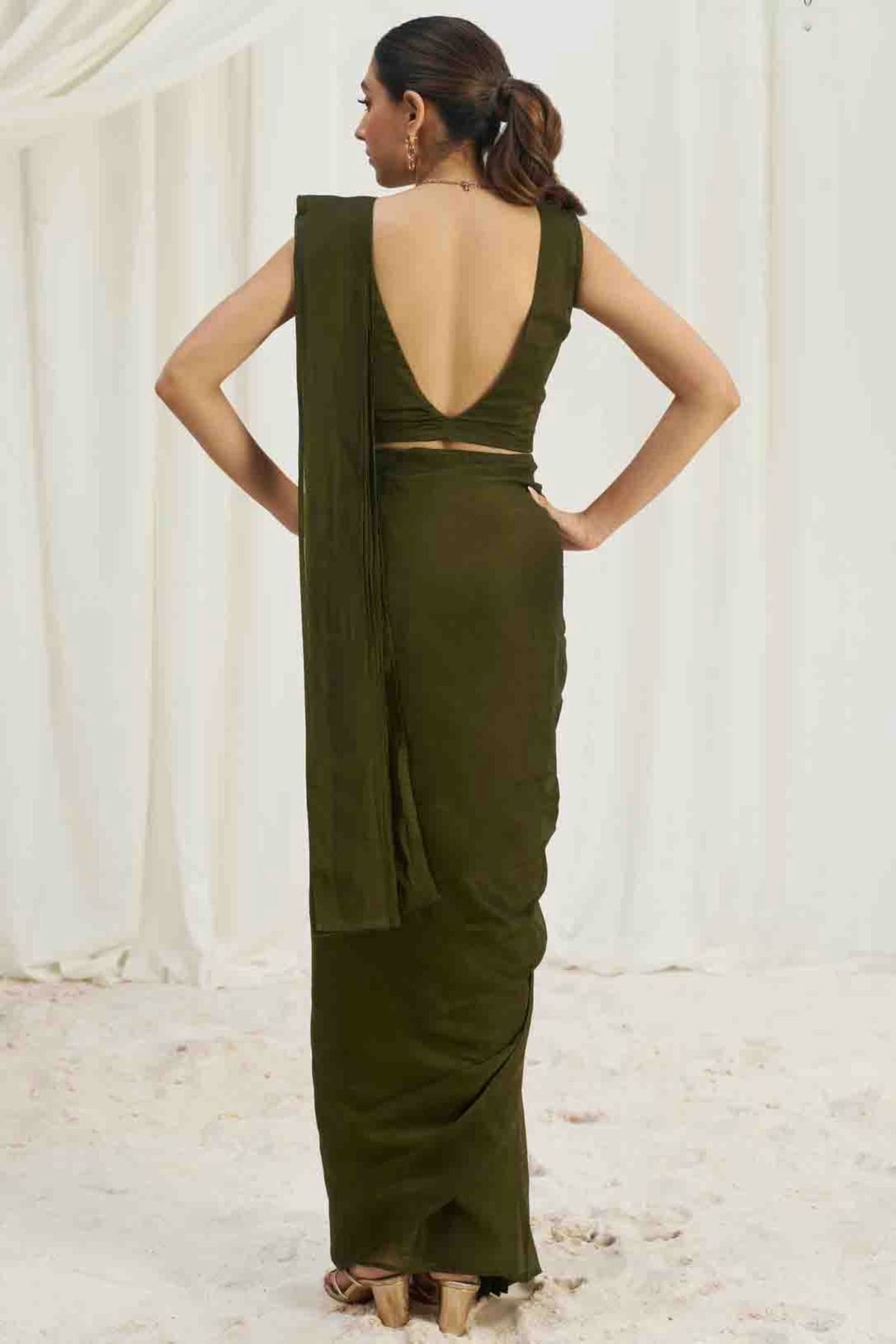 Mehendi Green Organza Hand Work Ready To Wear Saree VSSD1080979