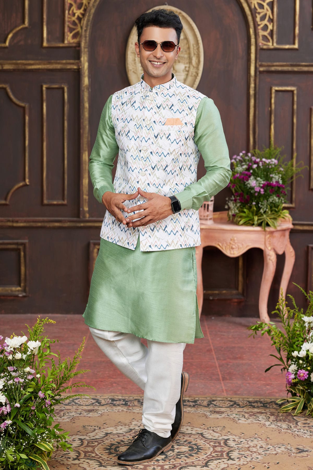 Elevate Your Style With Our Kurta Pajama Set, Complemented By A Chic Jacket. Crafted From Premium Fabrics, This Ensemble Offers A Perfect Blend Of Tradition And Modernity. Ideal For Festive Occasions Or Family Gatherings, It Promises Comfort And Elegance. Stand Out Effortlessly With This Must-Have Addition To Your Wardrobe!