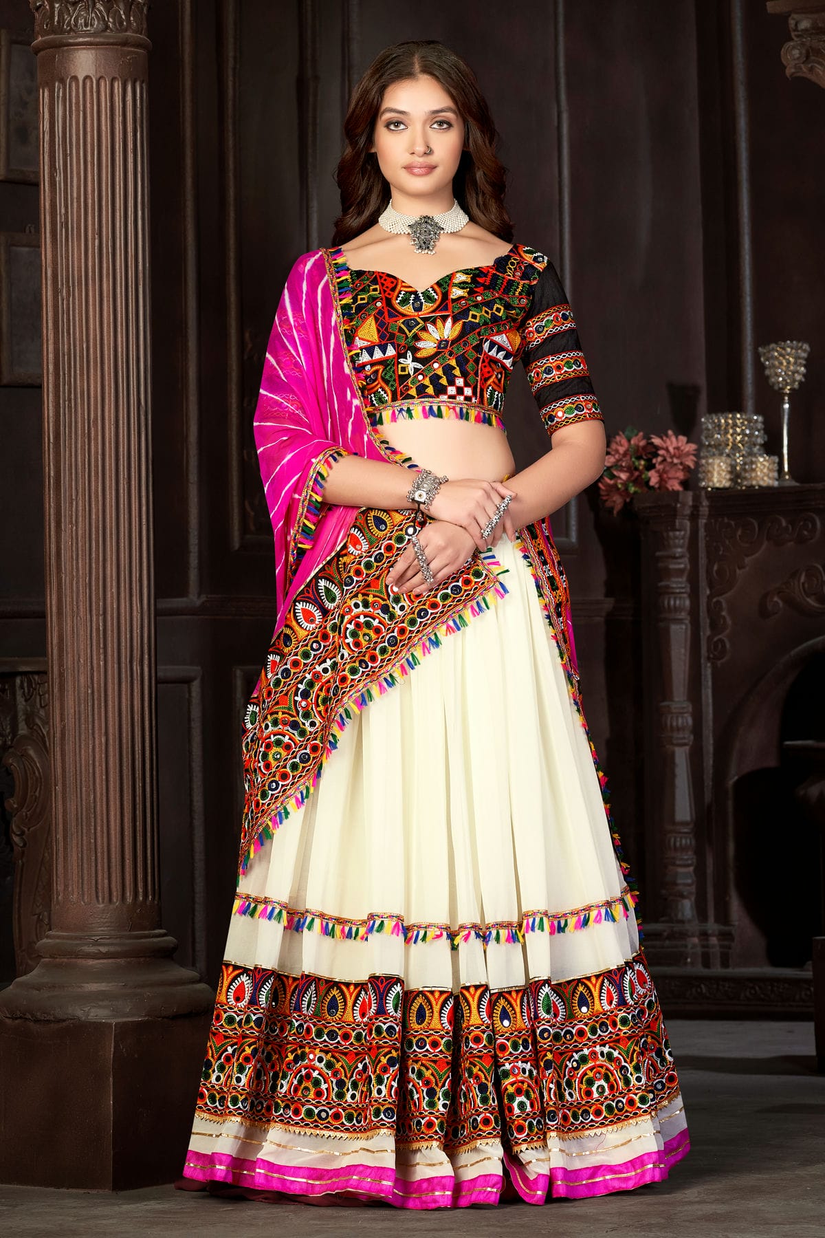 Off White Colour Embroidery Work Georgette Navratri Lehenga VSLD1170013