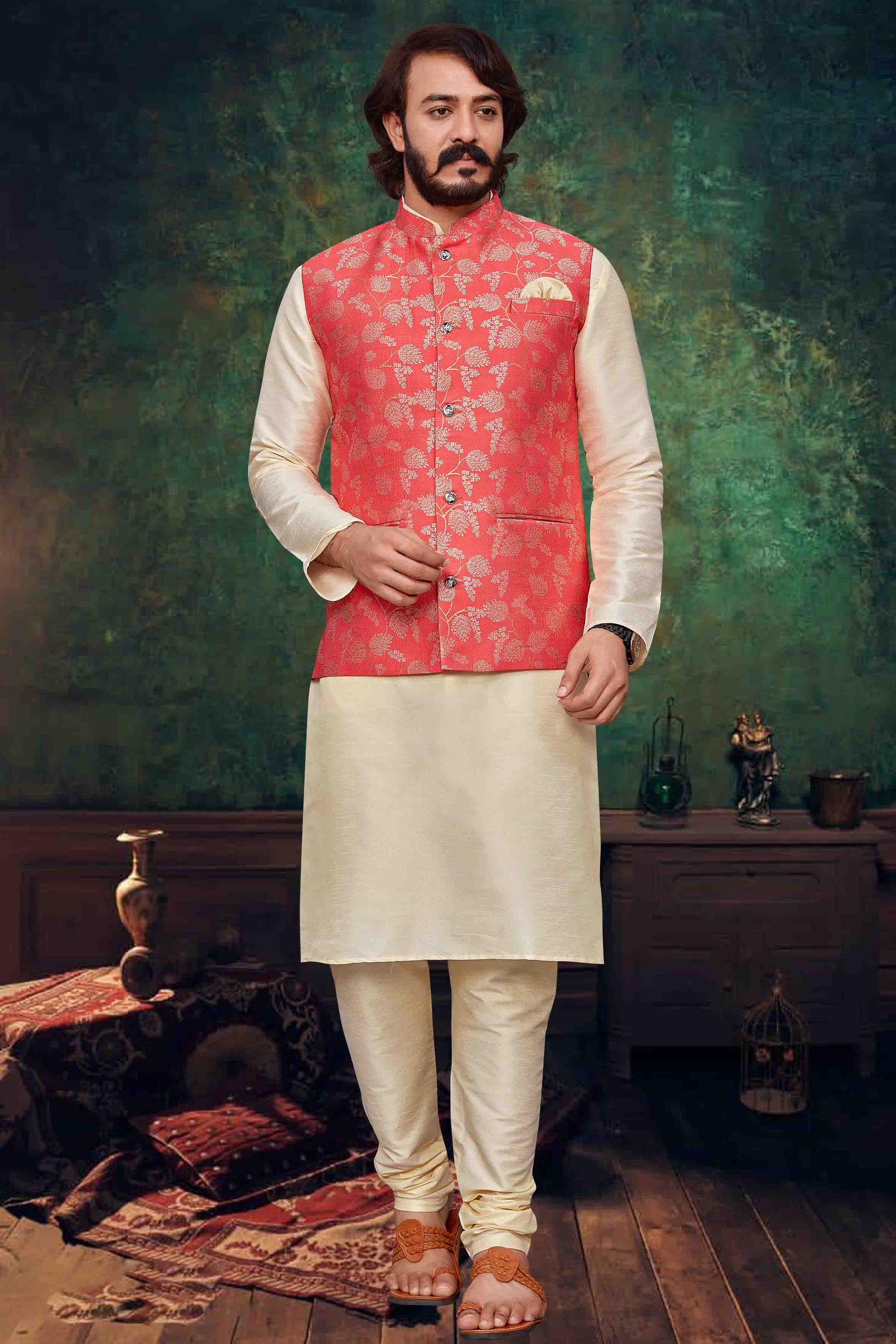 This Art Silk Kurta Pajama With Jacket In Off White Colour is a great way to show off your style and comfort. You can feel relaxed by wearing it at any function.
