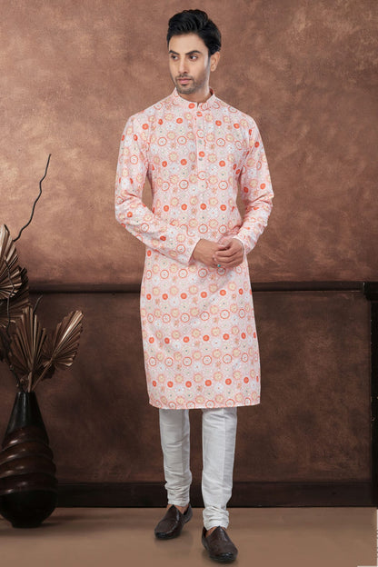 This Soft Rayon Kurta Pajama In Orange and Cream Colour is a great way to show off your style and comfort. You can feel relaxed by wearing it at any function.