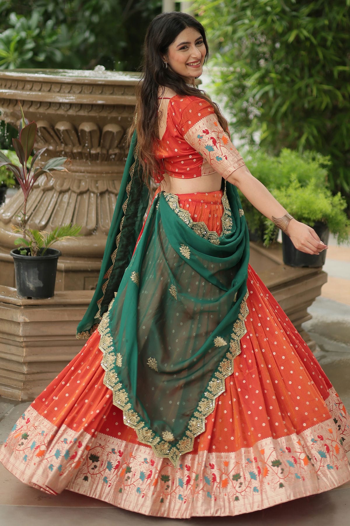 Orange Colour Cosmos Jacquard Embroidery Lehenga Choli VSLC1111390