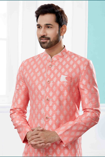 Peach Colour Indo Western In Banarasi Jacquard Fabric VSSH1040446
