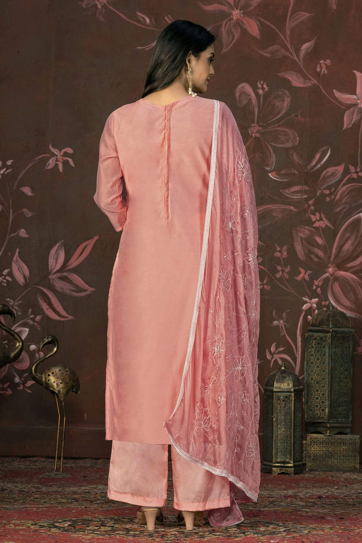Peach Colour Unstitched Cotton Jacquard Straight Suit VSUS1161265