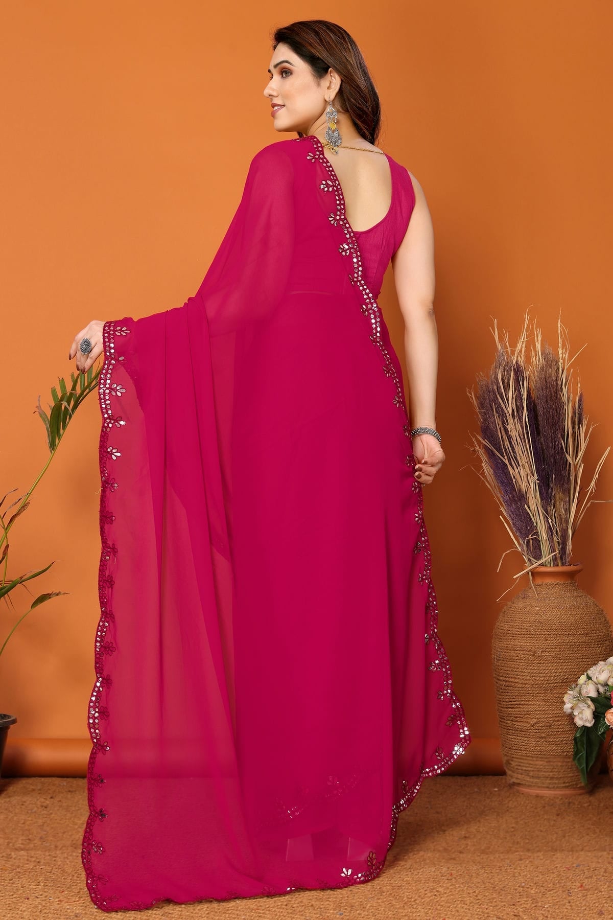 Pink Colour Georgette Mirror Work Saree VSSD1180119
