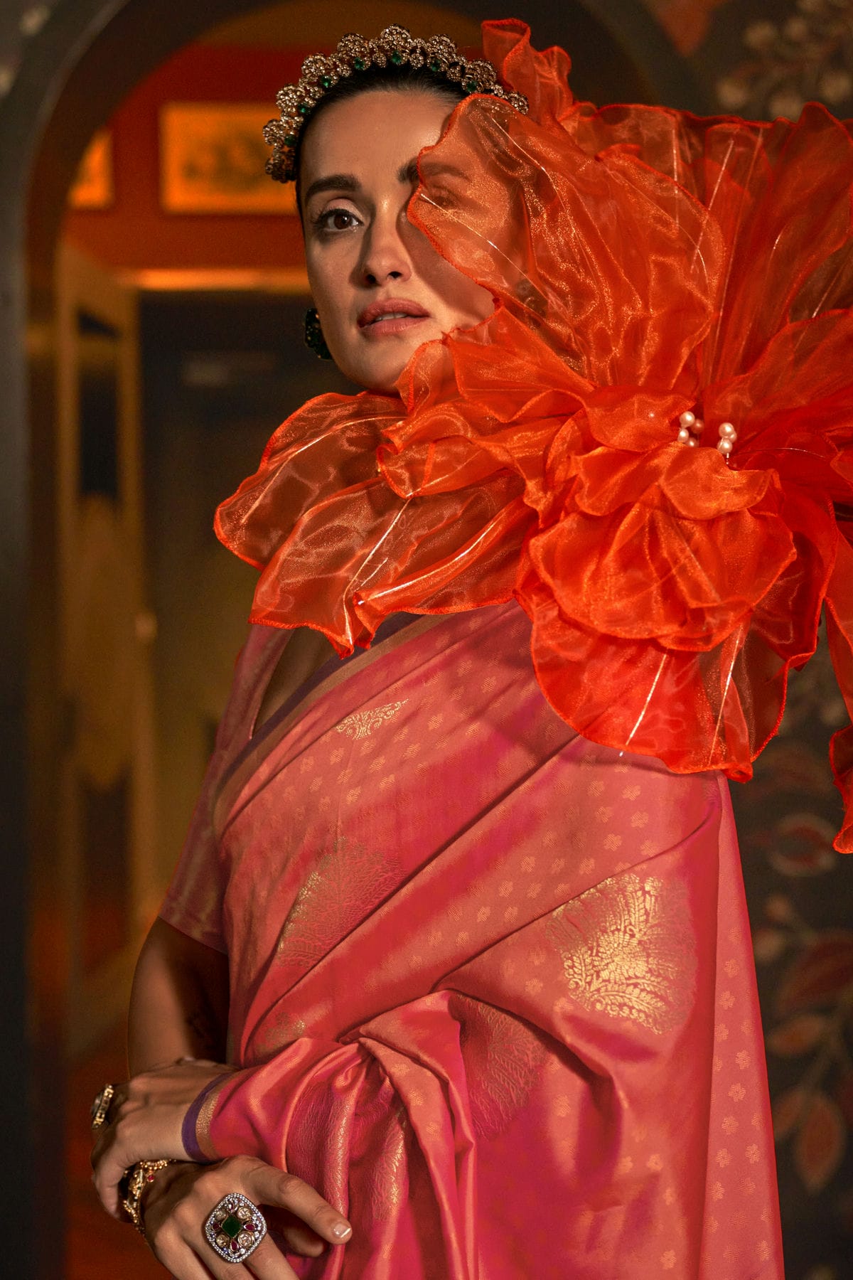 Pink Colour Handloom Weaving Silk Woven Work Saree VSSD1290076