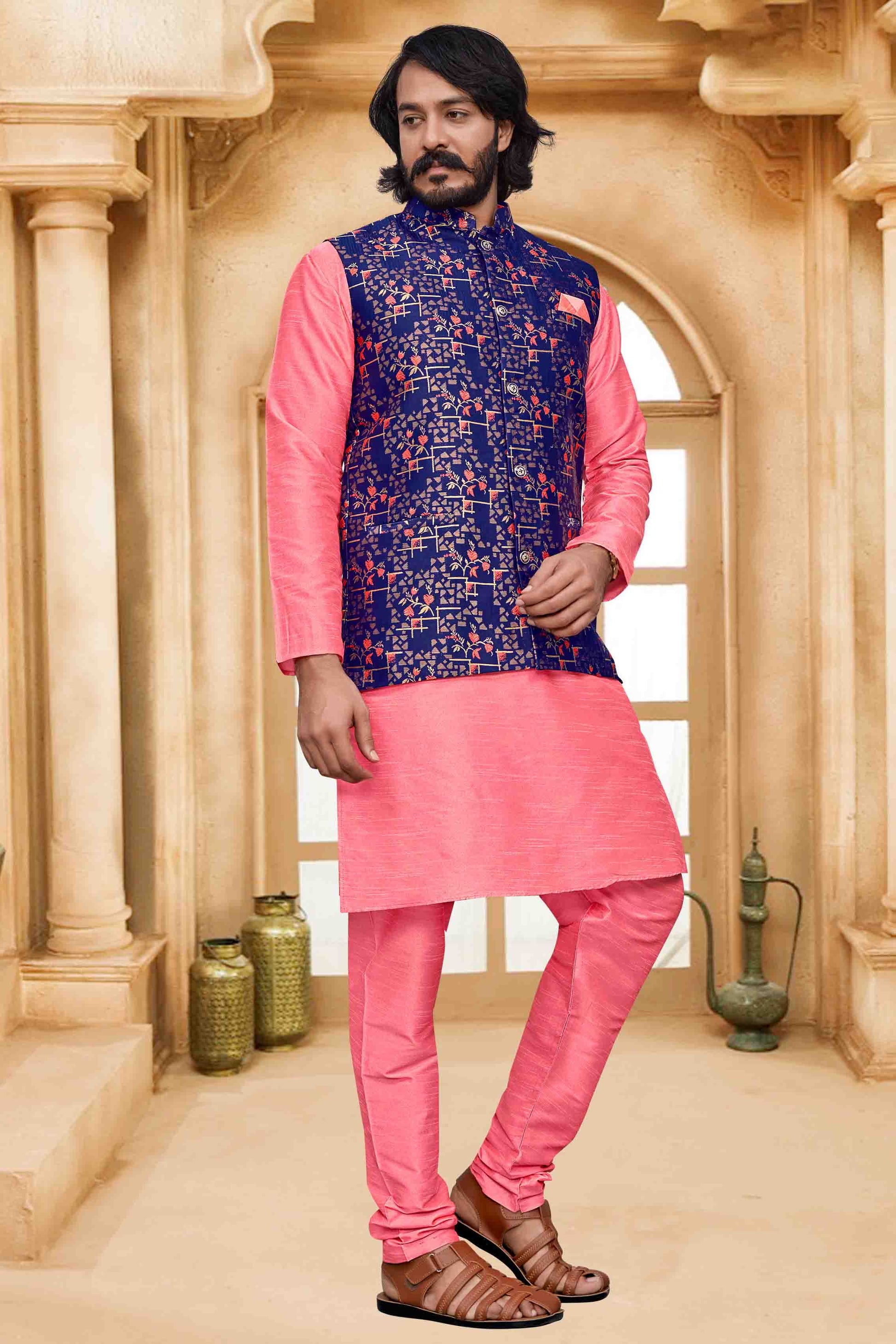 This Art Silk Kurta Pajama With Jacket In Pink Colour is a great way to show off your style and comfort. You can feel relaxed by wearing it at any function.