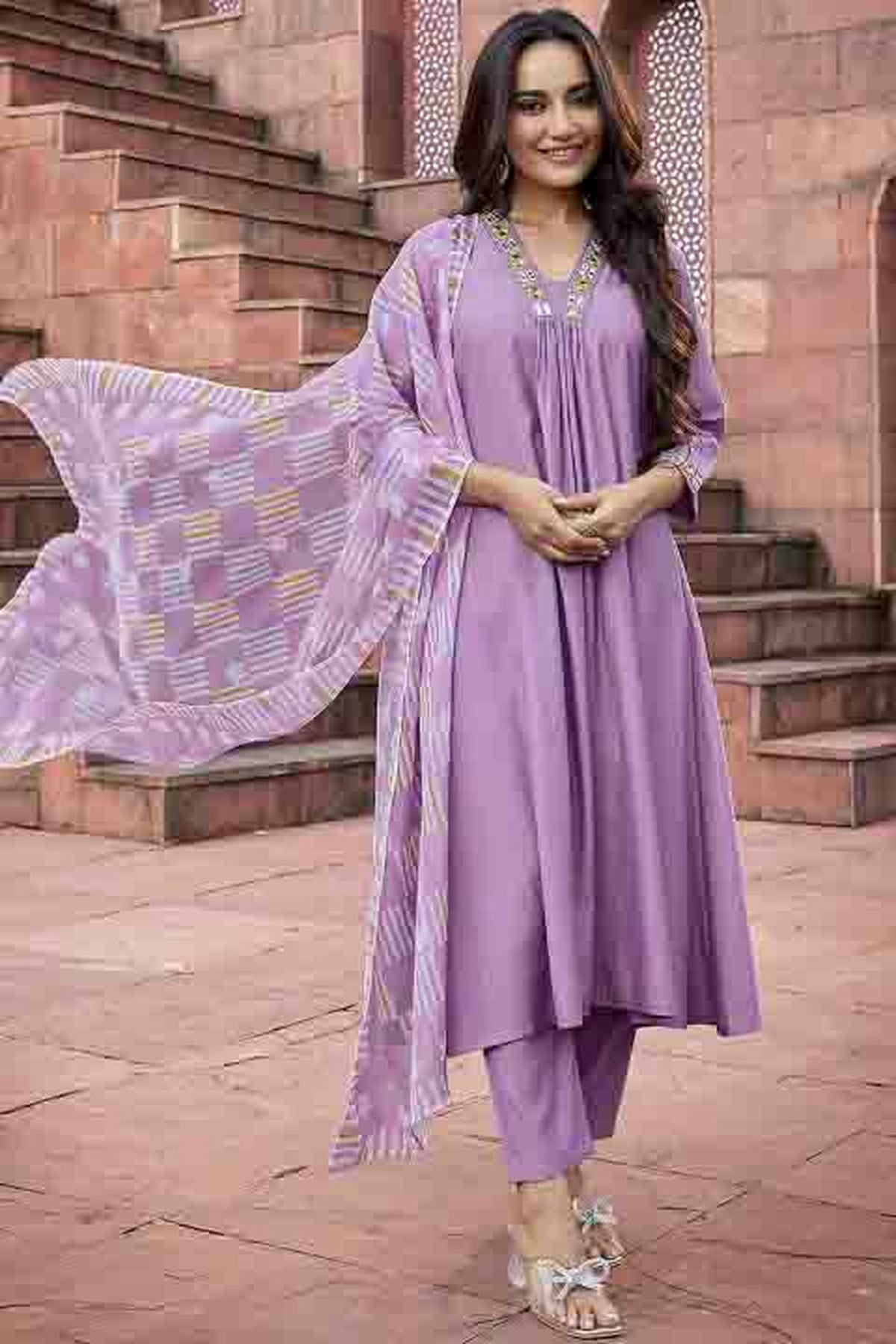 This Roman Silk Pant Style Suit In Purple Colour is a great way to show off your style and comfort. You can feel relaxed by wearing it at any function.
