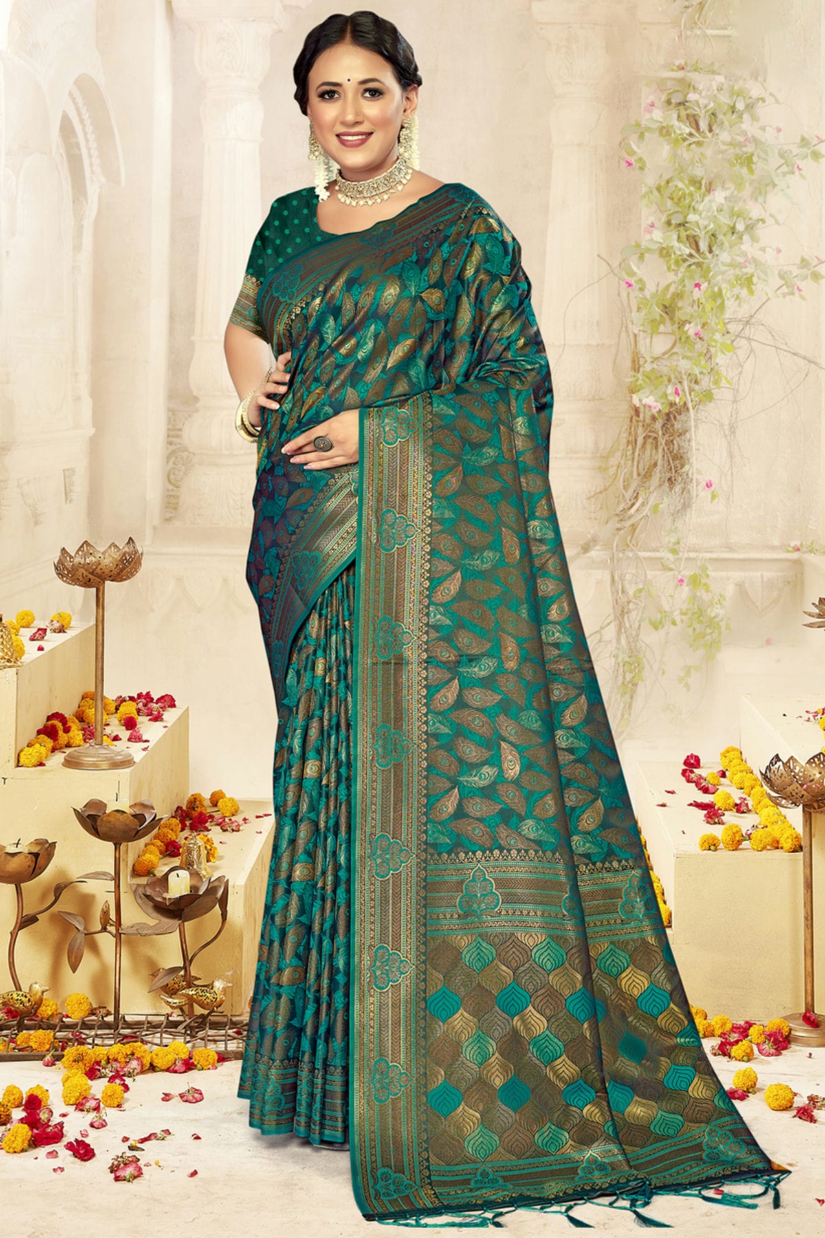 This Satin Silk Saree In Rama Green Colour is a great way to show off your style and comfort. You can feel relaxed by wearing it at any function.
