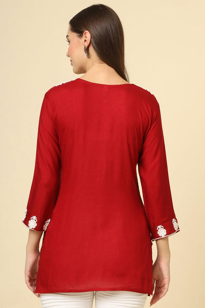 Red Colour Rayon Readymade Top VSTP1110854