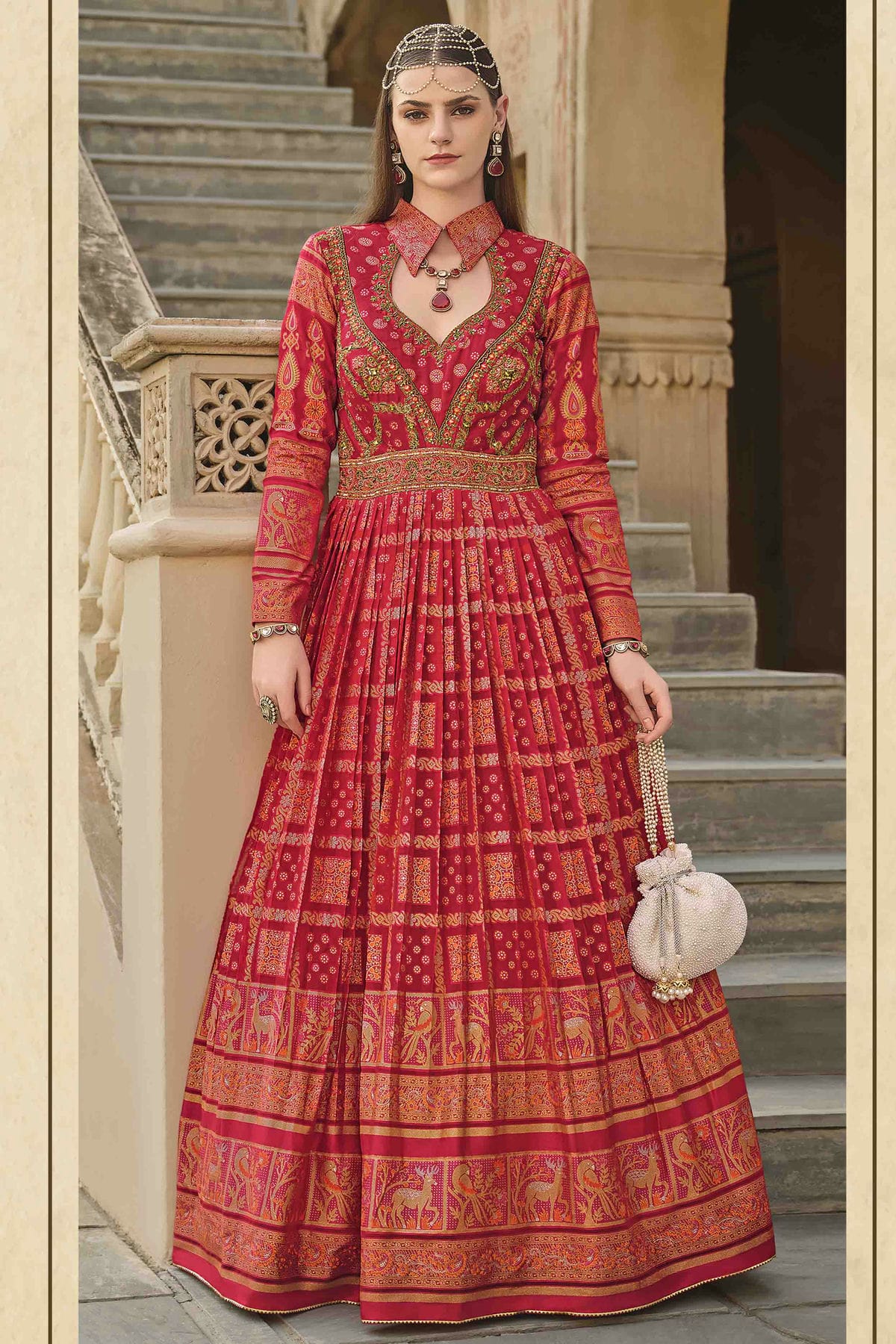 This Smooth Silk Gown In Red Colour is a great way to show off your style and comfort. You can feel relaxed by wearing it at any function.