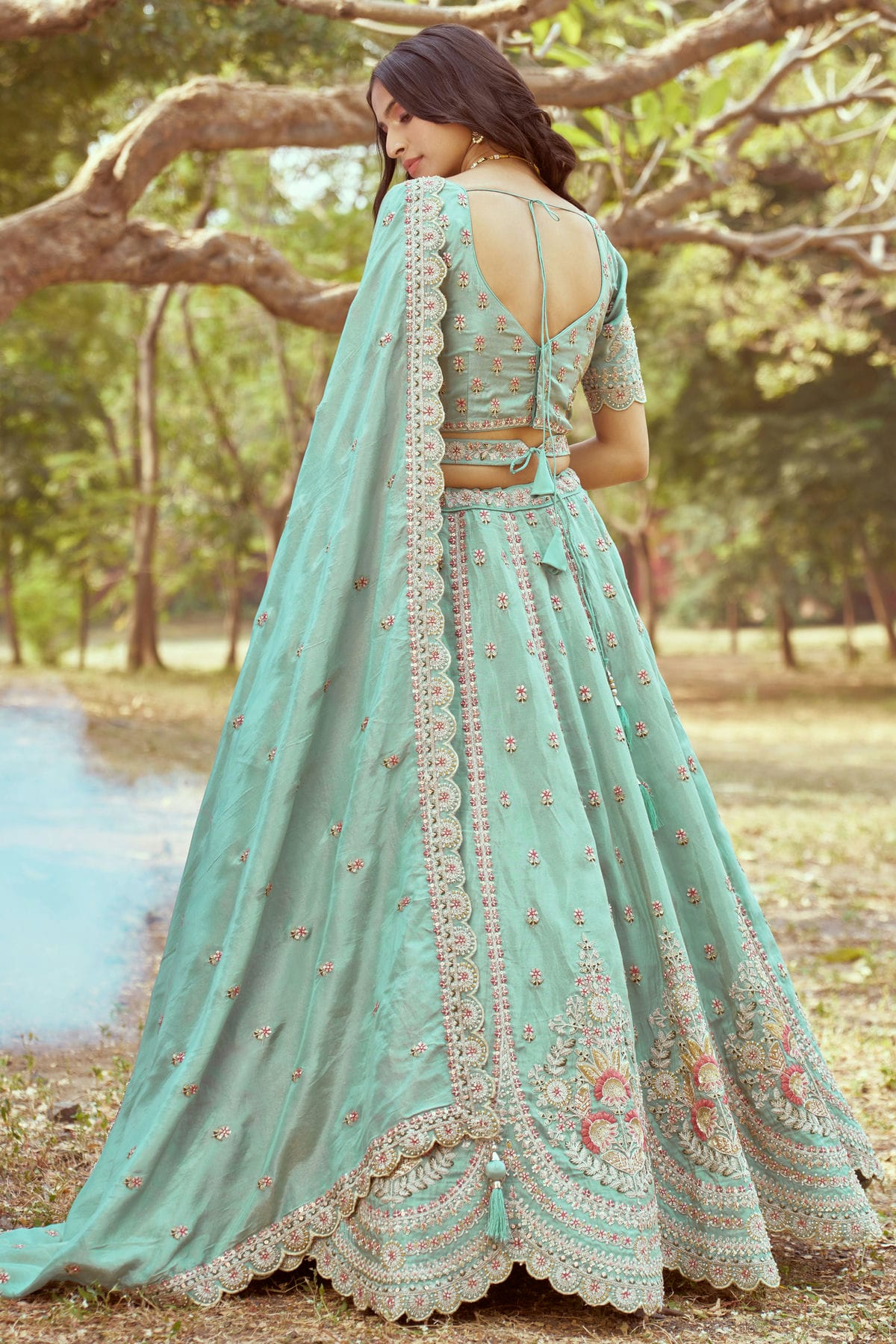 Sea Green Colour Tissue Embroidery Lehenga Choli VSLC1111389