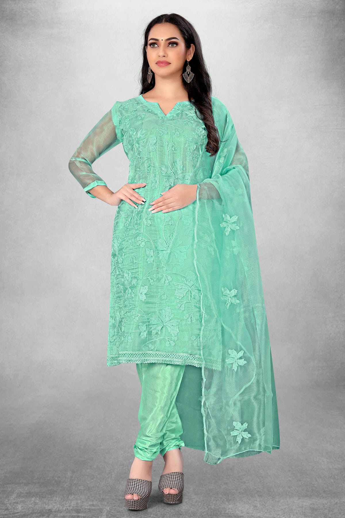 This Organza Churidar Suits In Sea Green Colour is a great way to show off your style and comfort. You can feel relaxed by wearing it at any function.