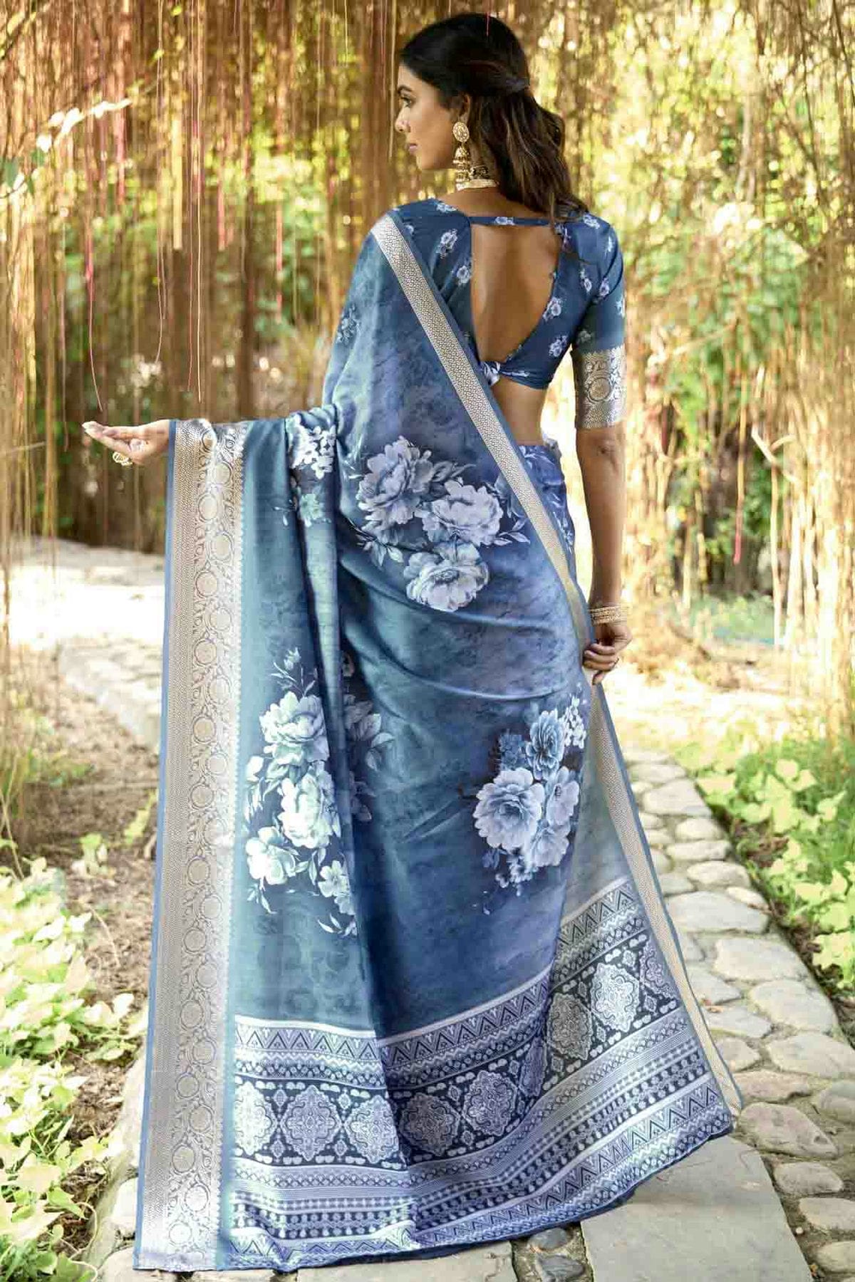 Make A Style Statement With This Digital Floral Printed Saree, Featuring Vivid, High-Definition Prints On Soft, Flowy Fabric. The Contemporary Floral Design Adds A Modern Twist To Traditional Wear, Making It Perfect For Both Casual And Festive Occasions. Effortlessly Elegant, This Saree Brings Color And Charm To Any Wardrobe.